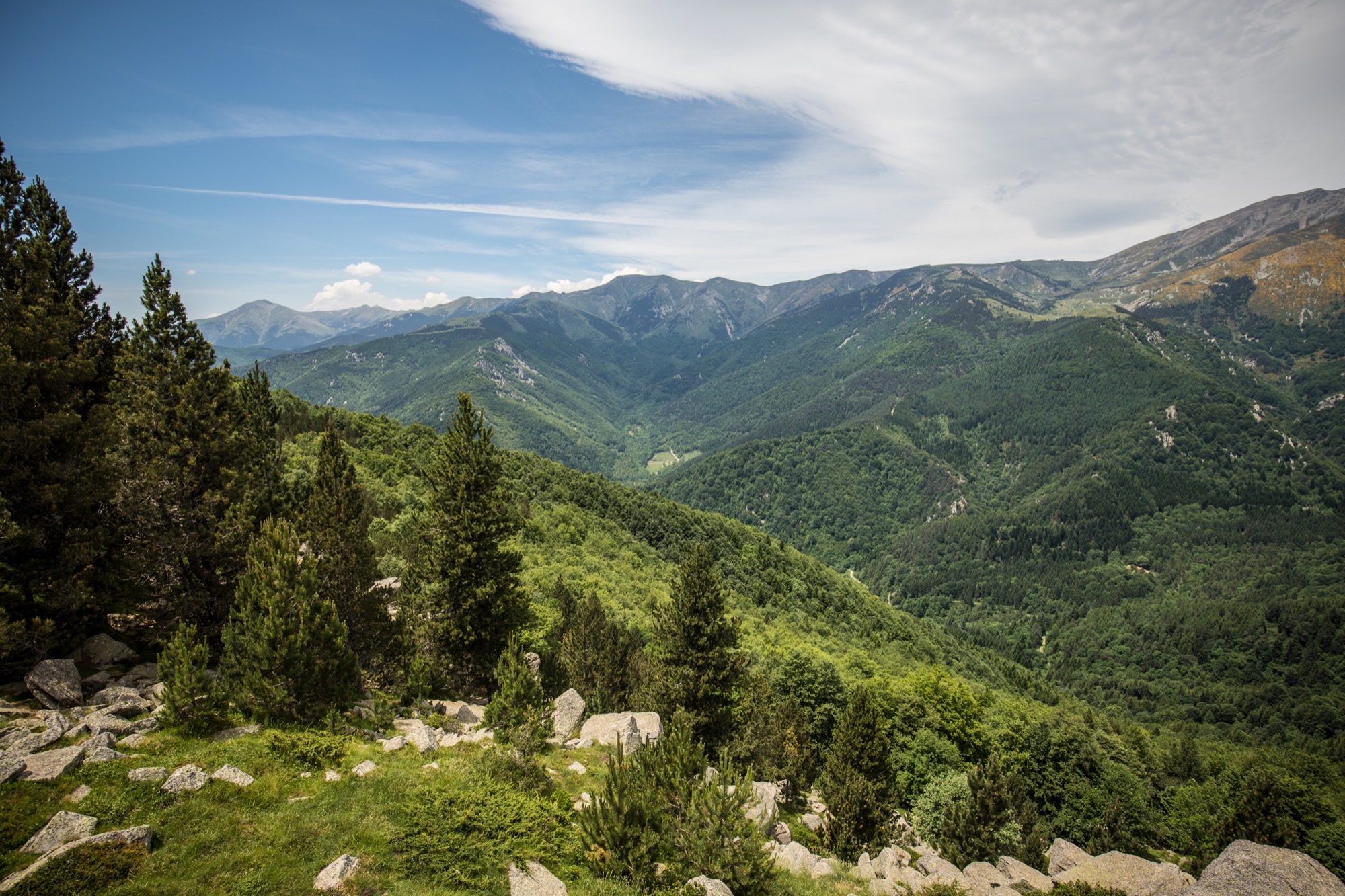 Le soleil a fini par percer et l’ombre est la bienvenue avant d’attaquer la toute dernière ascension vers le col séparant le pic de Coumeille de ses voisins. Un petit tour hors pistes permet de rejoindre le sommet du pic, qui n’offre pas de panorama à 360 degrés. Les vues sur le massif du Canigou et les crêtes dominant La Preste sont en revanche superbes et une claire invitation à une prochaine randonnée !