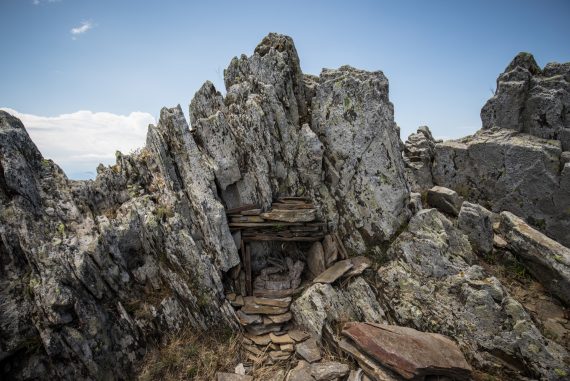 La descente après le rapide déjeuner se fait sans trop d’encombres grâce aux bâtons qui aident à aborder le terrain parfois glissant. On retrouve la bifurcation entre le GR et le contournement de Madeloc et on continue à ce moment-là sur le GR, avant de le quitter rapidement au moment où ce dernier s’apprête à descendre vers la côte.