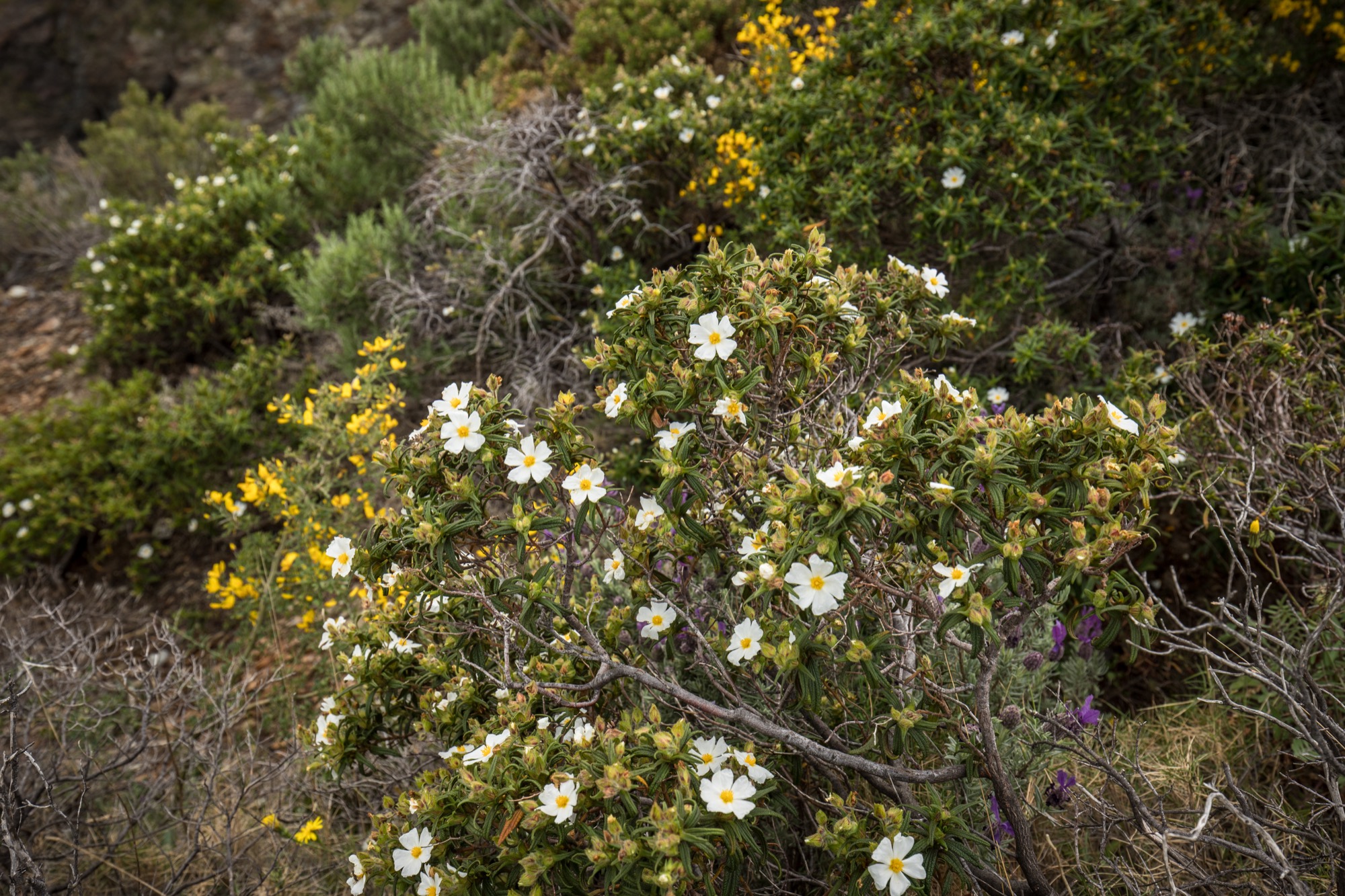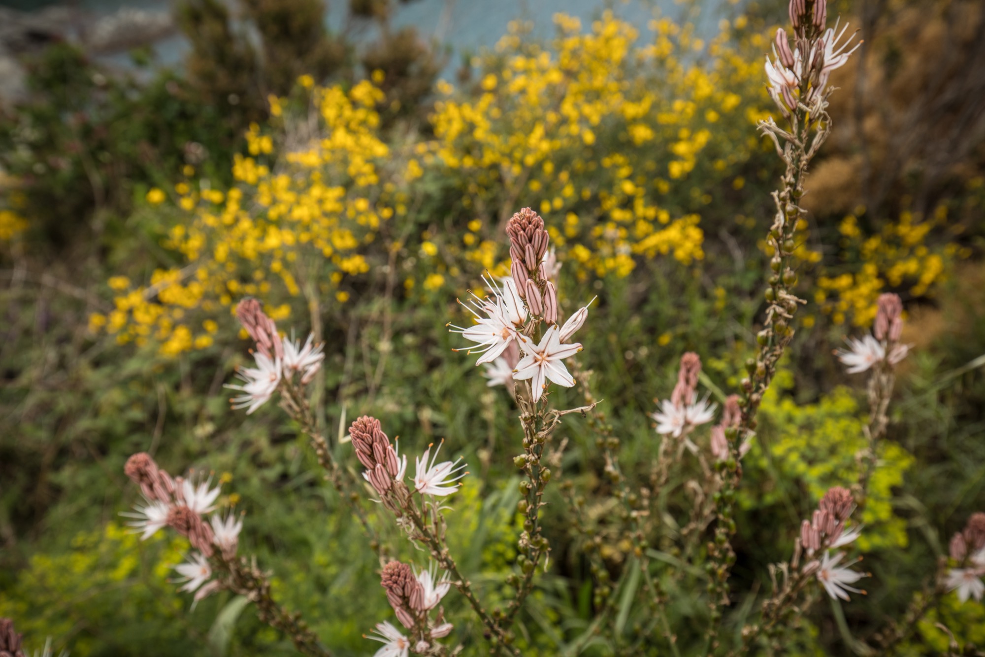 Le maquis est en fleurs, le jaune jaillissant de partout, contrastant agréablement avec le gris du ciel. Le soleil se fait rare, timide parfois, surgissant entre deux nuages avant d’être de nouveau occulté. Je me dis que cela aurait été mieux en plein soleil… mais aussi nettement plus pénible pour une journée de réacclimatation au “sud”.