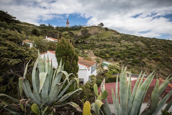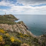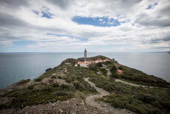 Ce fut chose faite au joli mois de mai dernier, avec un tronçon de petite taille mais sympathique, du phare de Béar au cap d’Ullastrell. Pourquoi pas plus ? Parce que j’ai traîné le matin… La randonnée du jour démarre donc en amont du phare de Béar, au niveau de la station militaire qui le surplombe. Le ciel était couvert mais il faisait agréablement doux, avec le seul regret de voir les contrastes mangés par les nuées.