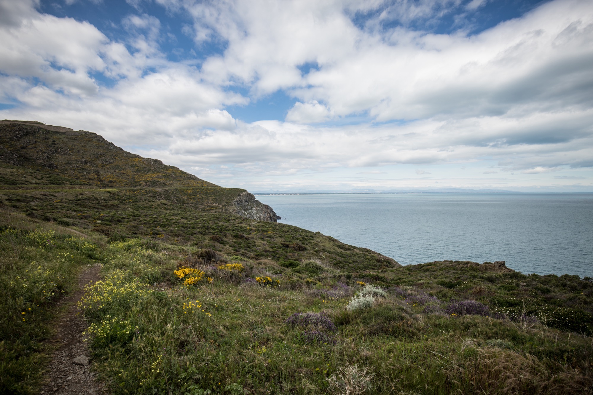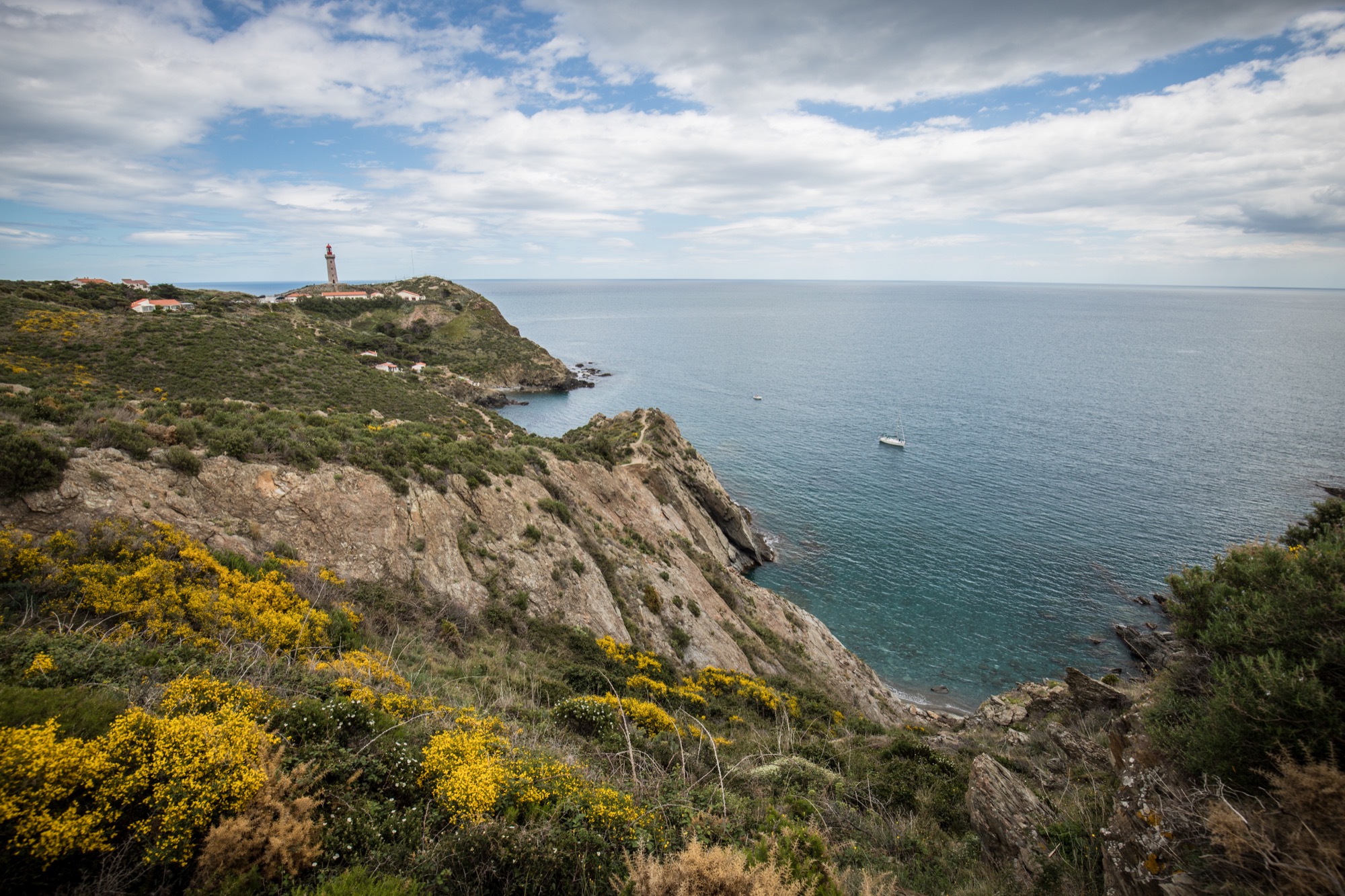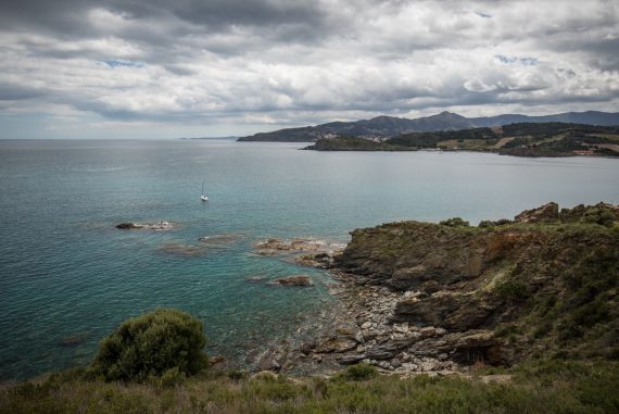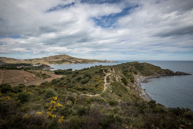 Si je me suis déjà promené sur le littoral des Pyrénées-Orientales, en voiture essentiellement mais aussi au travers de quelques randonnées sur les contreforts escarpés et dans les vignobles de Collioure et Port-Vendres, je n’avais en revanche jamais randonné au ras des flots, à mi-chemin entre les nuances de bleu et de vert de cette côte Vermeille.