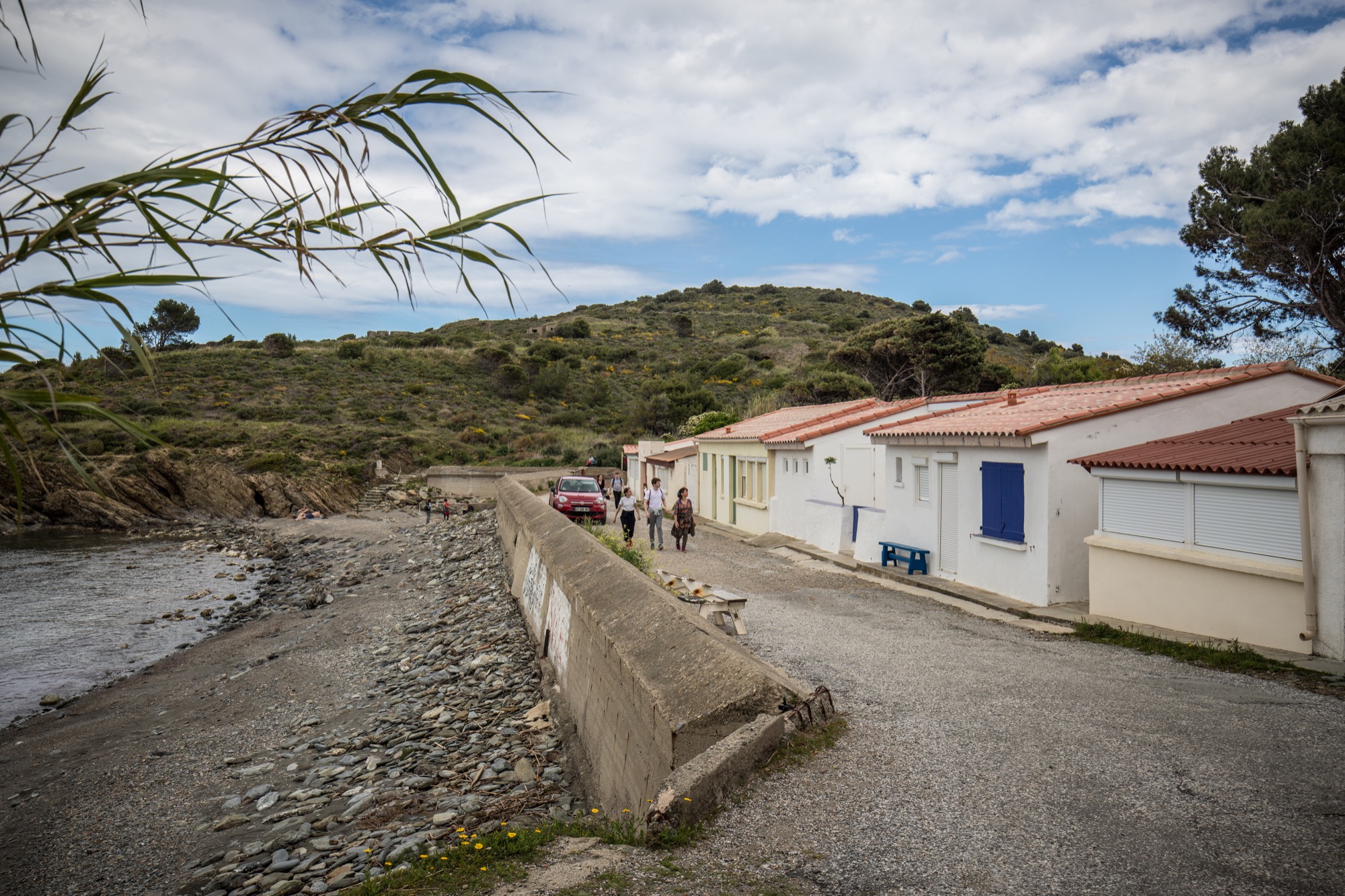 C’est là, après la petite plage d’El Forat et ses toutes aussi petites maisons, que s’achève mon parcours. Banuyls-sur-Mer se laisse apercevoir au loin, pas très photogénique avec ses barres, hôtels et résidences des années 70. Je préfère tourner casaque et filer boire un petit café sur la plage de Bernardi, avant de retrouver le cap Béar.