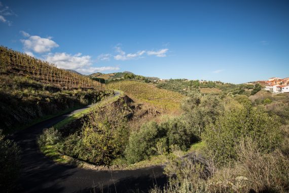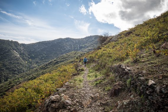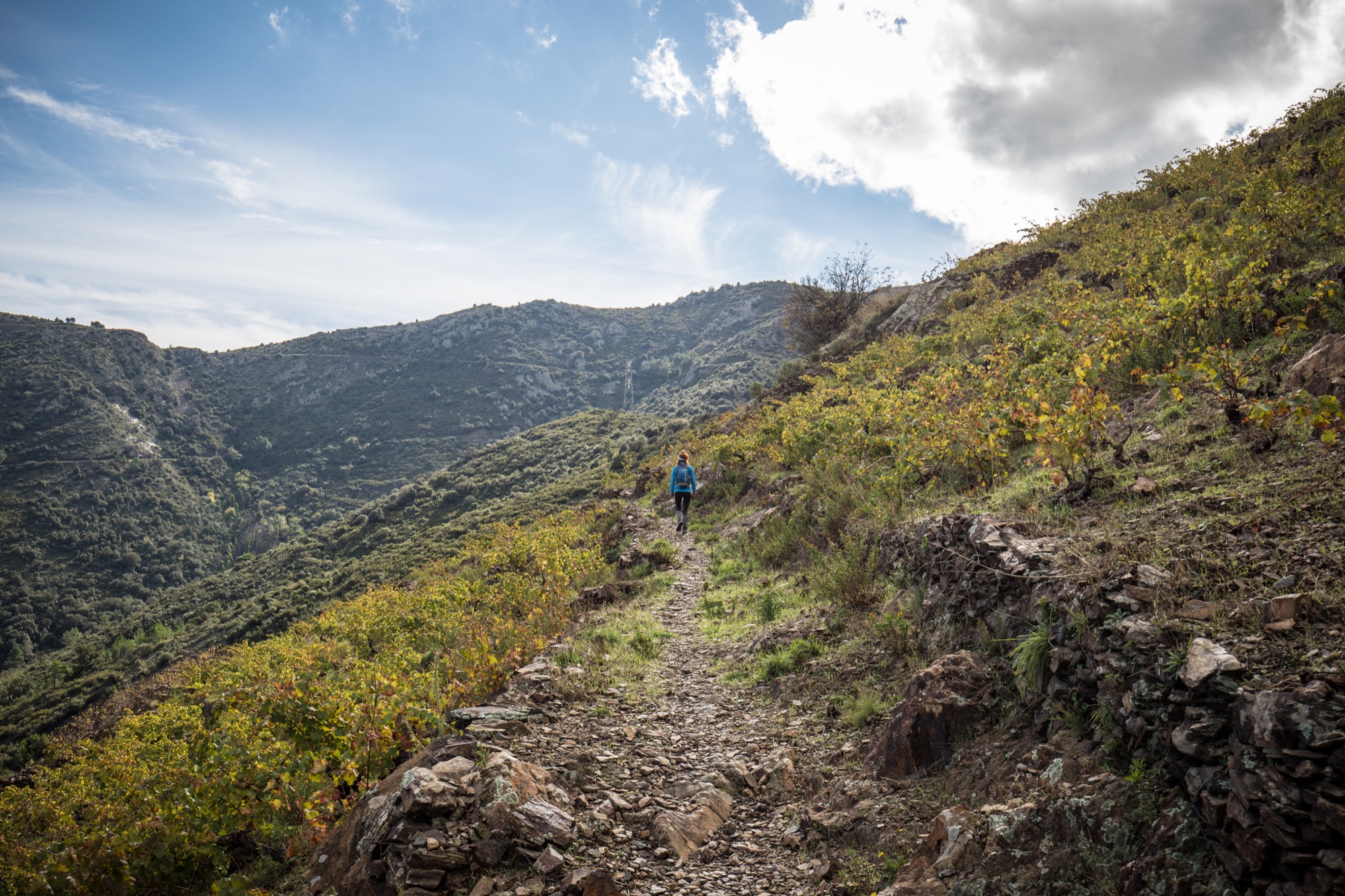 Le chemin à proprement parler part de Puig del Mas et remonte à travers les vignes, offrant d’un côté de superbes vues sur la montagne et de l’autre des vues bien dégagées sur Banyuls et sur certaines des tours construites par les rois de Majorque.