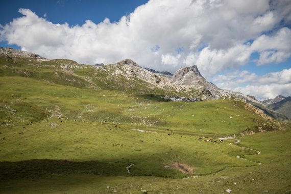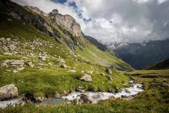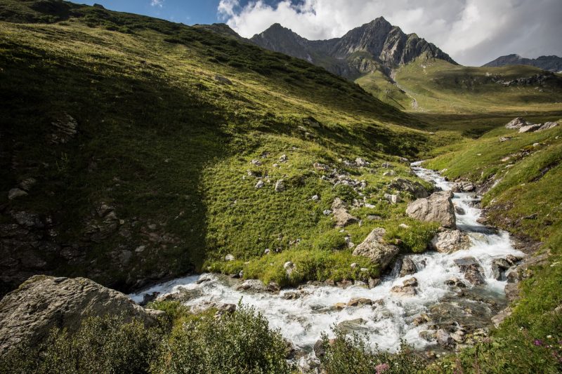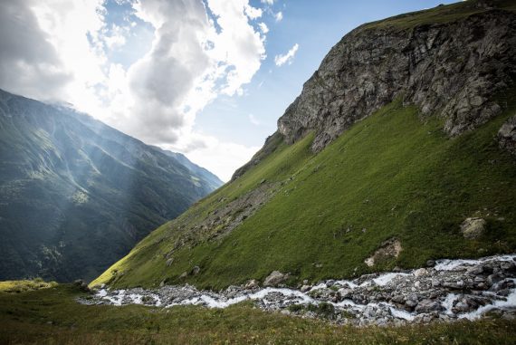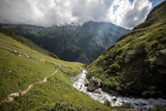 Il ne reste alors plus qu’à le dépasser en prenant bien garde aux poules dangereuses et à entamer la fin d’une descente qui semble interminable quand le genou grince terriblement et présente tous les symptômes d’un syndrome de l’essuie-glaces. Heureusement, le paysage est magnifique et longe un torrent très photogénique alors que le ciel se charge doucement mais sûrement.
