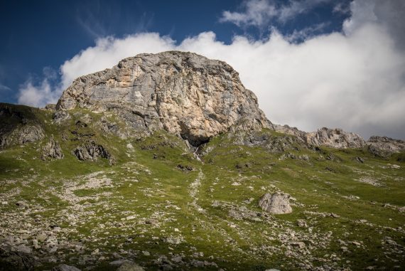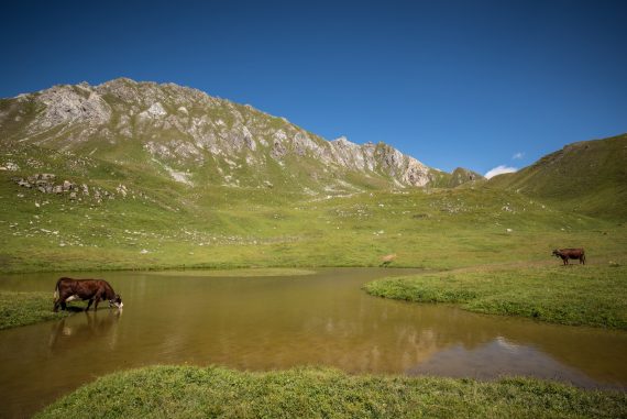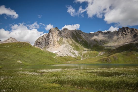 Il est temps de passer de l’autre côté du col pour découvrir une nouvelle palette de paysages tandis que le sentier descend doucement en balcon vers le col du Palet, puis plus bas vers le refuge du Col du Palet. Encore un peu plus bas, après la pause déjeuner face à l’Aiguille des Aimes, on croise l’adorable lac du Gratteleu.
