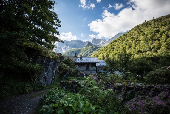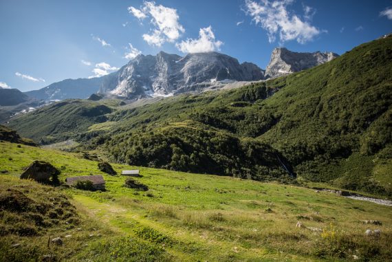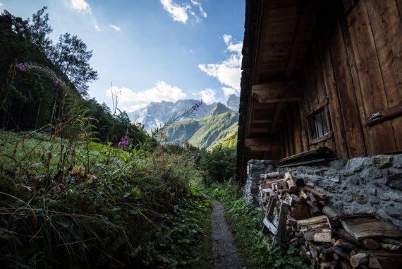 L’objectif initial était donc bien le tour de l’Aiguille des Aimes et c’est dans cet esprit que j’ai commencé, au départ de l’adorable et pour ainsi dire paradisiaque hameau du Laisonnay d’en-Bas, suivi du non moins mignon Laisonnay d’en-Haut. On traverse les quelques ruelles pour prendre un petit sentier montant à travers les framboisiers sauvages vers une piste qui file quant à elle vers le joli refuge de la Glière.