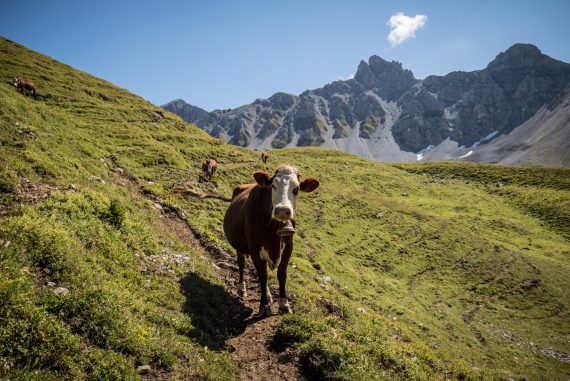 On dépasse le refuge de la Glière, en contrebas du sentier, pour continuer d’arpenter la piste montant par paliers d’abord puis tranquillement vers divers chalets perdus au milieu des alpages, avec des vues parfaites pour bien faire les choses.
