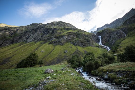 La randonnée en paysages majeurs se termine sur les bords de la cascade faisant la séparation entre les hameaux du Laisonnay, offrant des vues supplémentaires vers le fond de vallée menant ensuite à Champagny-le-Haut. Quelle beauté que ce coin, quel incroyable bout de randonnée en Vanoise aussi !