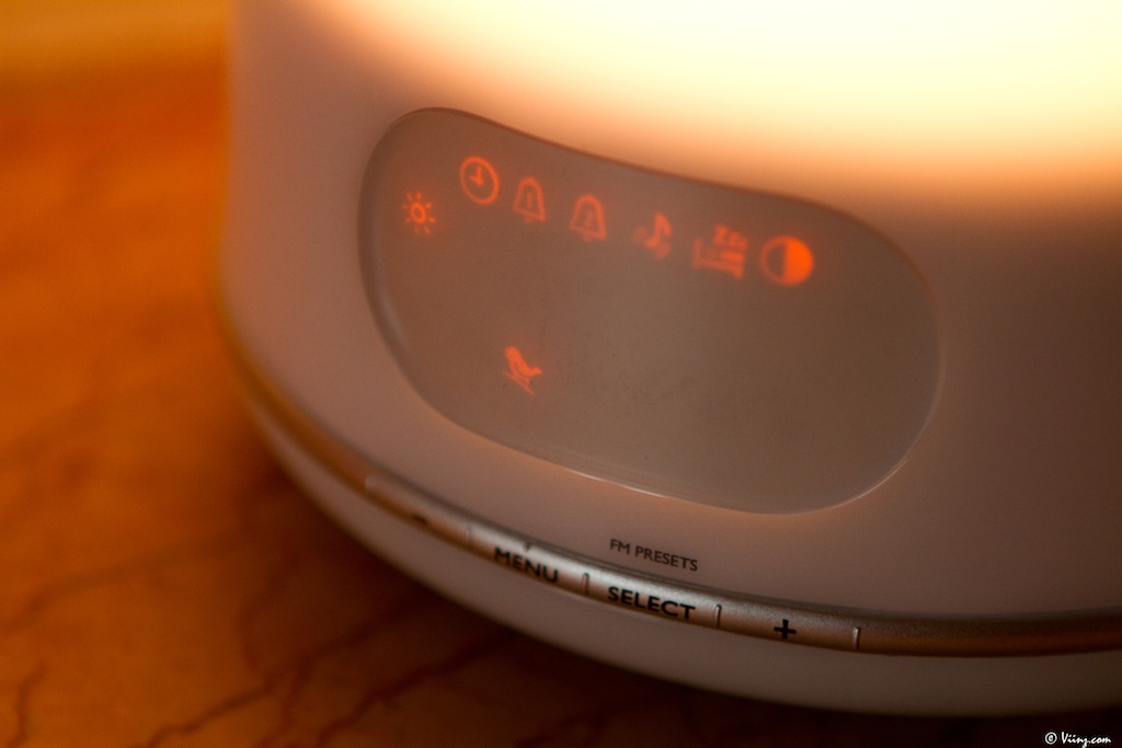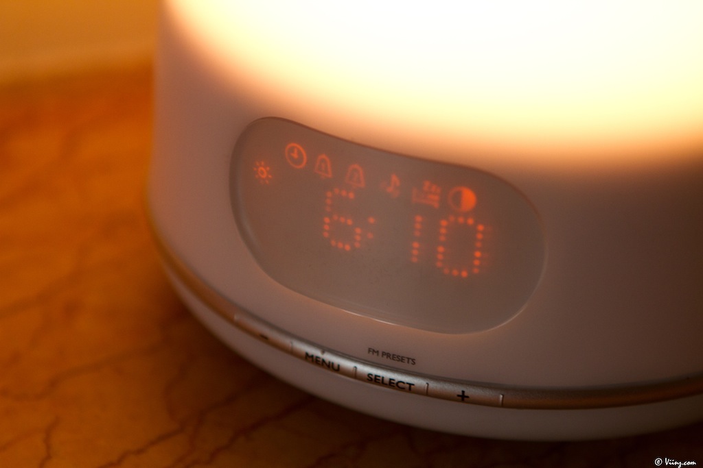 Les réglages se font d’ailleurs de manière complètement transparente via les touches + – Menu et Select. Il m’a simplement fallu sortir le mode d’emploi pour quelques petites choses supplémentaires comme les mémoires de la radio ou le réglage de la simulation d’aube. Autrement dit, le réglage est vraiment évident à faire, un bon point.