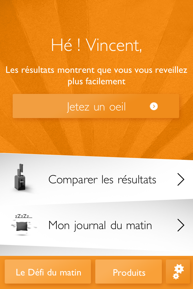Reste donc la question de la qualité du réveil, de ce type de réveil, par rapport à mon ancien fonctionnement. Celui-ci était d’ailleurs très simple : l’iPhone qui sonne fort dans le salon à 6h10 afin de me forcer à sortir du lit et à lancer ma journée… mon quotidien depuis 7 mois ! Afin de quantifier la qualité du réveil, je me suis muni de deux outils : primo ma subjectivité, secundo l’application Wake-app développée par Philips. J’ai mené le test pendant une semaine sans Éveil Lumière puis pendant deux semaines avec le fameux réveil, en l’oubliant par mégarde de temps à autre.
