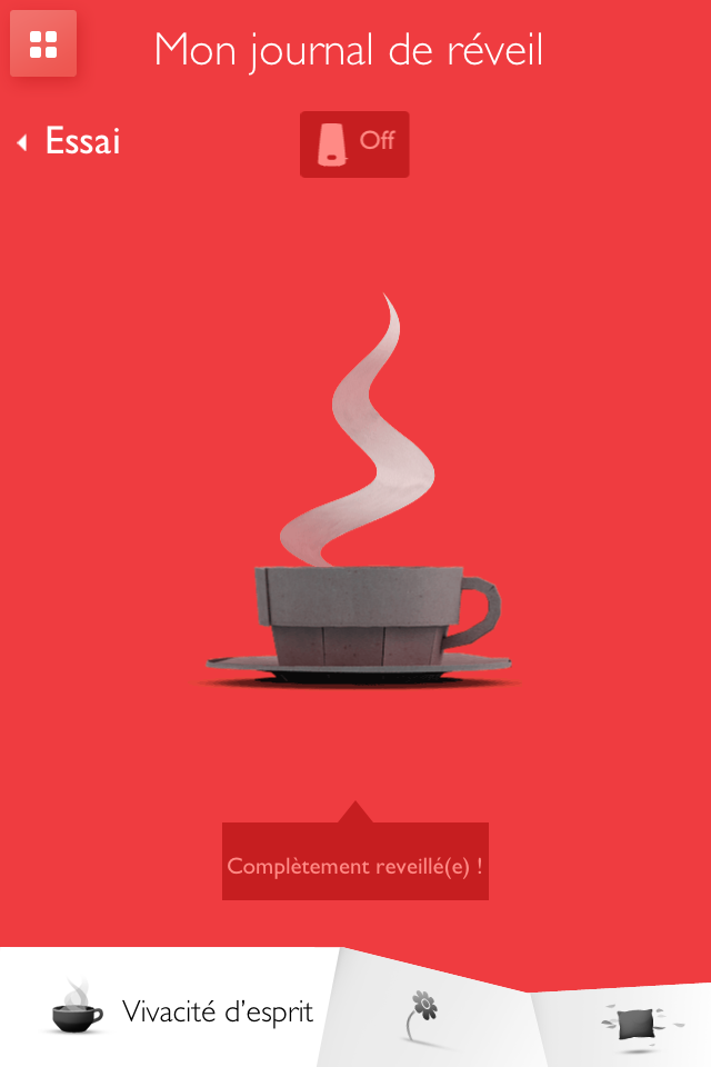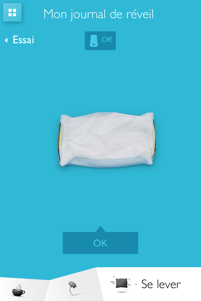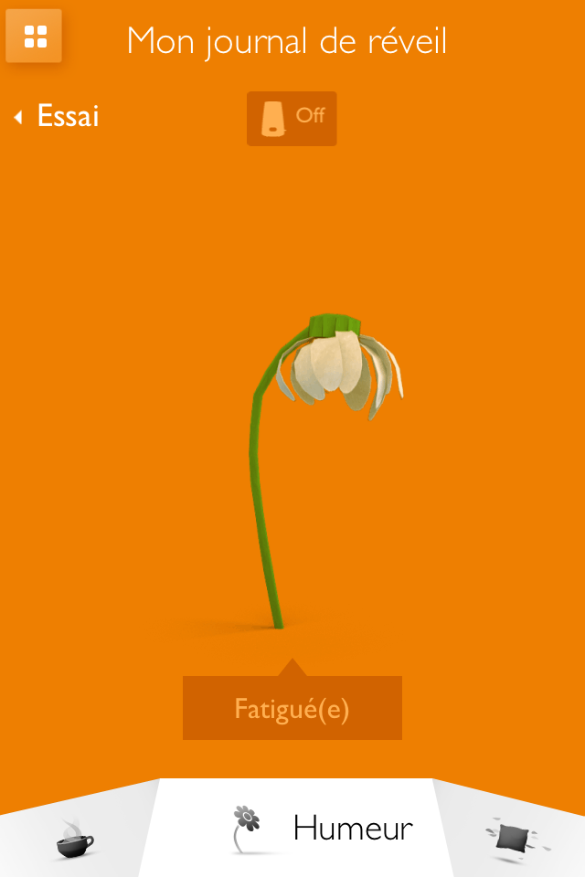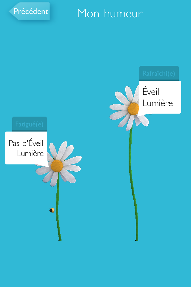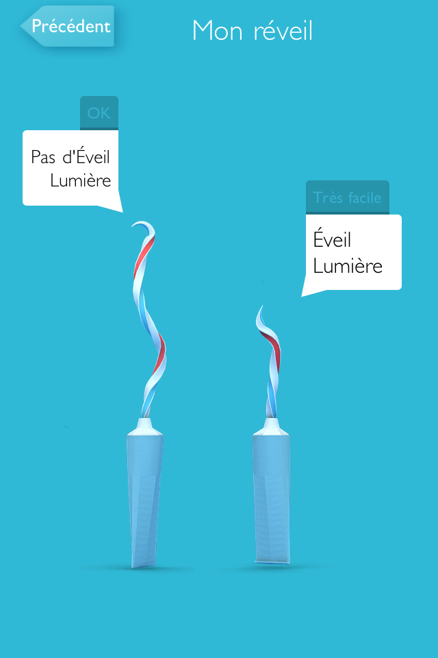 L’application est amusante : à heure dite et en utilisant l’alarme de l’iPhone, elle vous pose quelques questions : vous sentez-vous en forme, avez-vous eu du mal à me lever et enfin un petit test de réactivité de bon matin ! A partir de ces résultats avec / sans le réveil, l’application fait un comparatif et vous indique si oui ou non vous vous réveillez mieux.