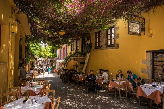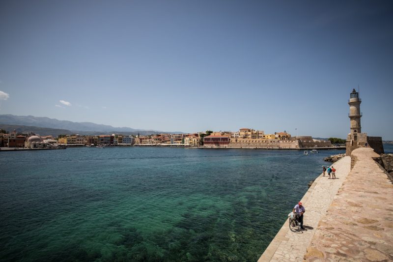 Première étape : La Canée ! La ville et son admirable port sont ceints de vieux remparts lui donnant un cachet bien particulier. Ancienne capitale de l’île, elle est assez étendue et bâtie mais au bord des flots, son cœur est bien préservé avec un mélange d’influences turques et vénitiennes.