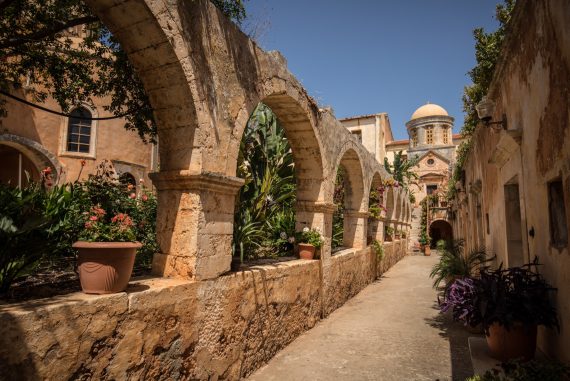 Direction maintenant vers le centre de la péninsule, au delà de l’aéroport de La Canée. La péninsule d’Akrotiri abrite quelques monastères fort charmants, dont celui de Agia Triada, fondé au XVIIème siècle et véritable havre de paix et de verdure, entouré d’oliviers. Belle exposition à l’intérieur par ailleurs ! Bref : il serait vraiment dommage de passer à côté.