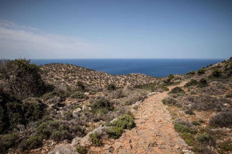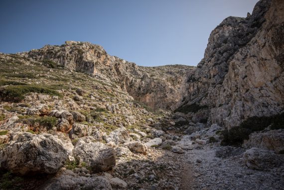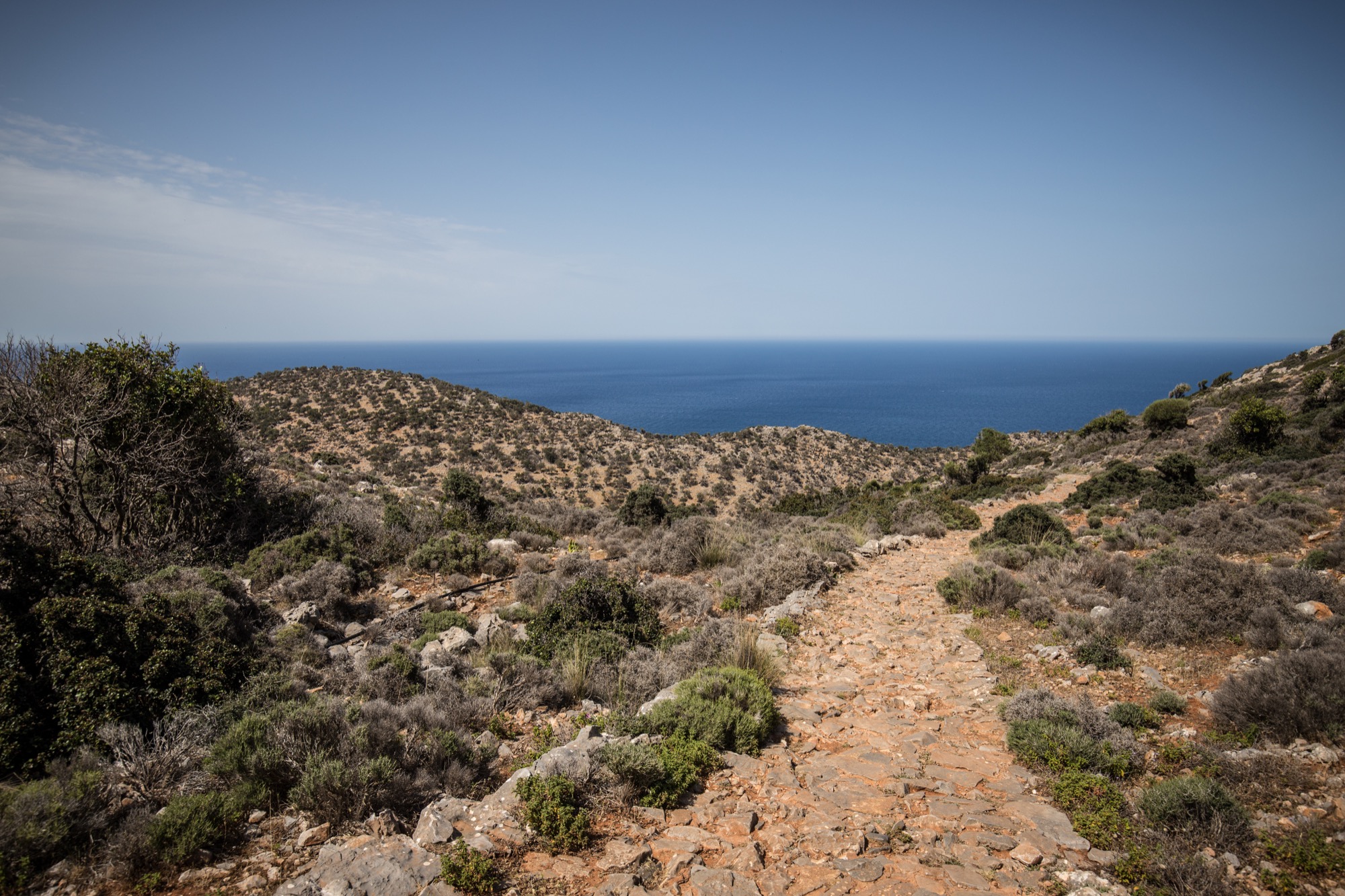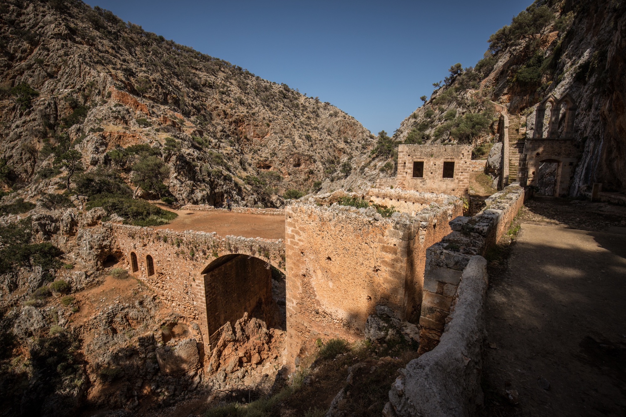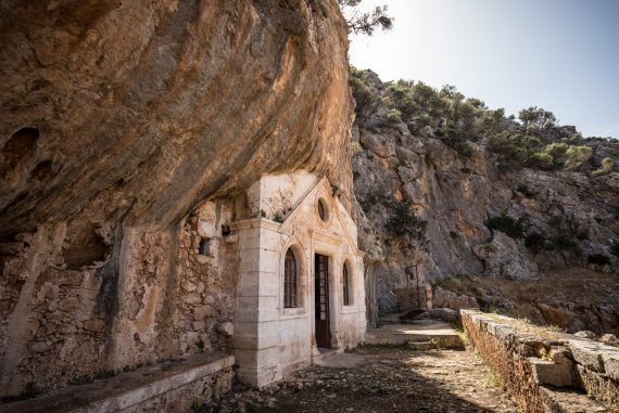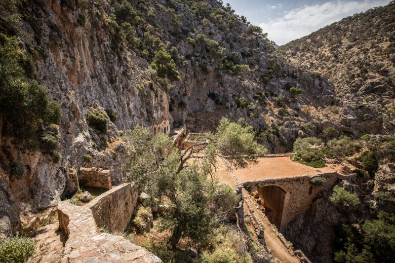 Au bout du sentier d’accès, une petite porte permet de se diriger vers la suite du spectacle, une jolie petite randonnée (la n°9 du Rother crétois) qui descend à la grotte de Katholiko puis au monastère éponyme. L’endroit est magnifique, abandonné désormais mais son emplacement en fait un lieu de choix pour une belle balade !