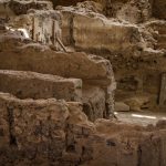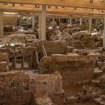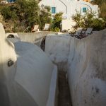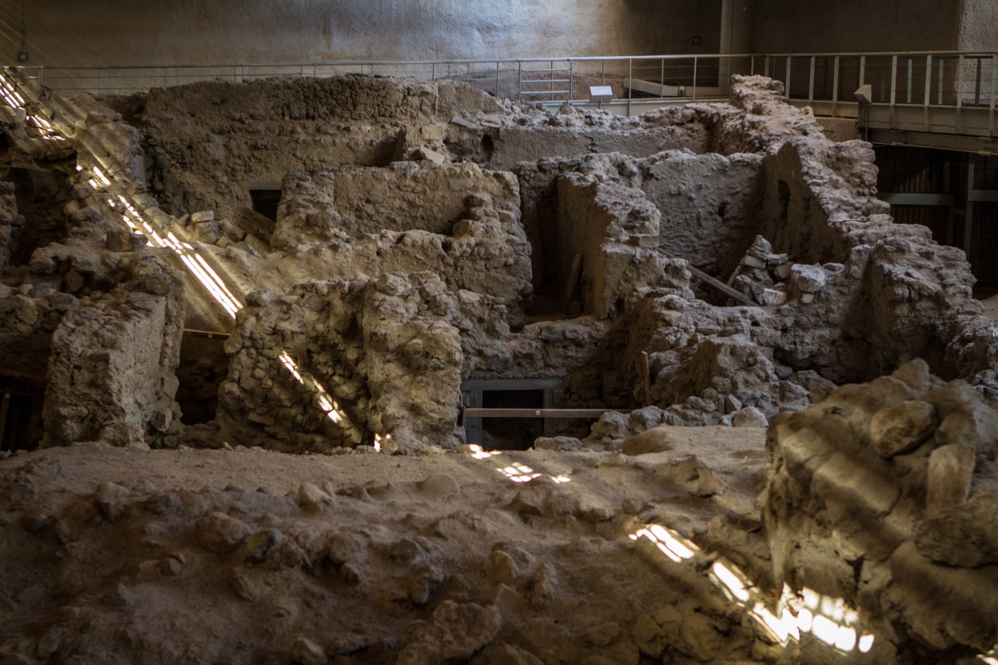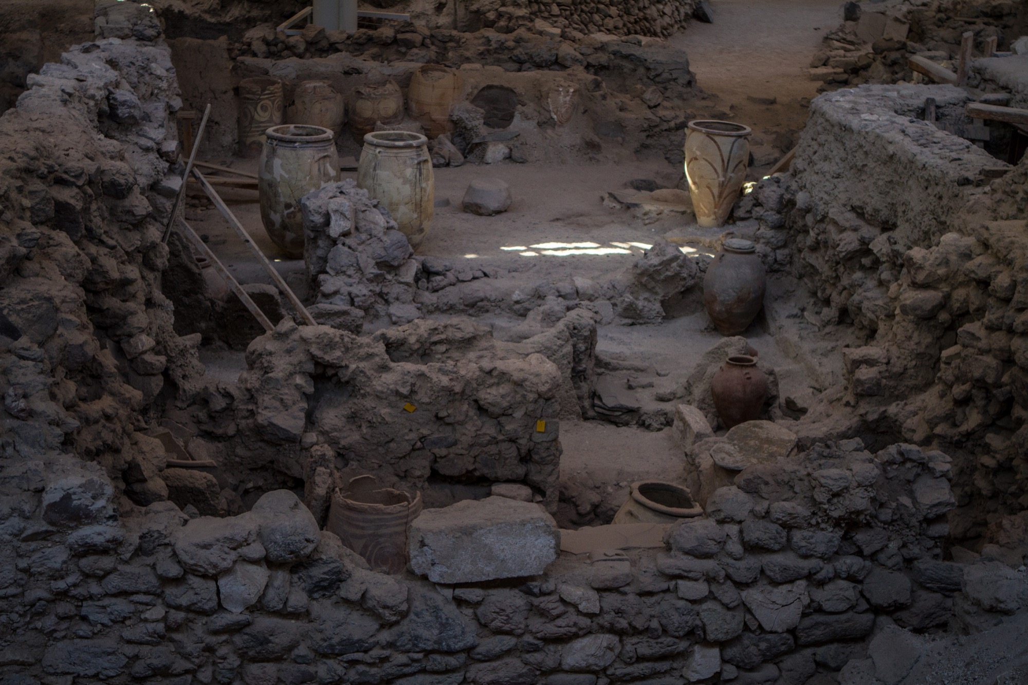 Lors de ma dernière visite, j’avais du choisir entre l’escapade en bateau jusqu’au volcan, au centre de la caldeira et la Pompei de Santorin : les ruines d’Akrotiri. Cette ville, recouverte par l’explosion du volcan, a été redécouverte et explorée depuis plusieurs décennies, protégée aussi par une gigantesque toiture. La visite se fait donc à l’ombre, sur des plateformes surplombant ou traversant les ruines. A la fois impressionnant et décevant.