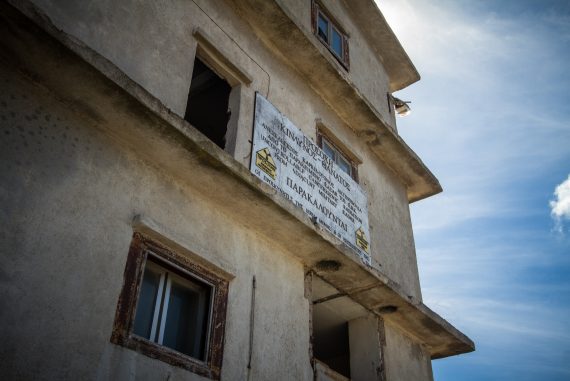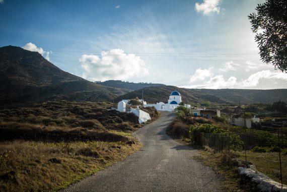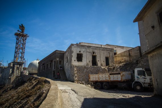 L’étape suivante était aussi un coin manqué lors du premier voyage : Moni Profiti Iliou, au sommet de l’île, entre centre radar radioactif, zone miliaire et vieux monastère. On vient ici pour une chose : la vue.