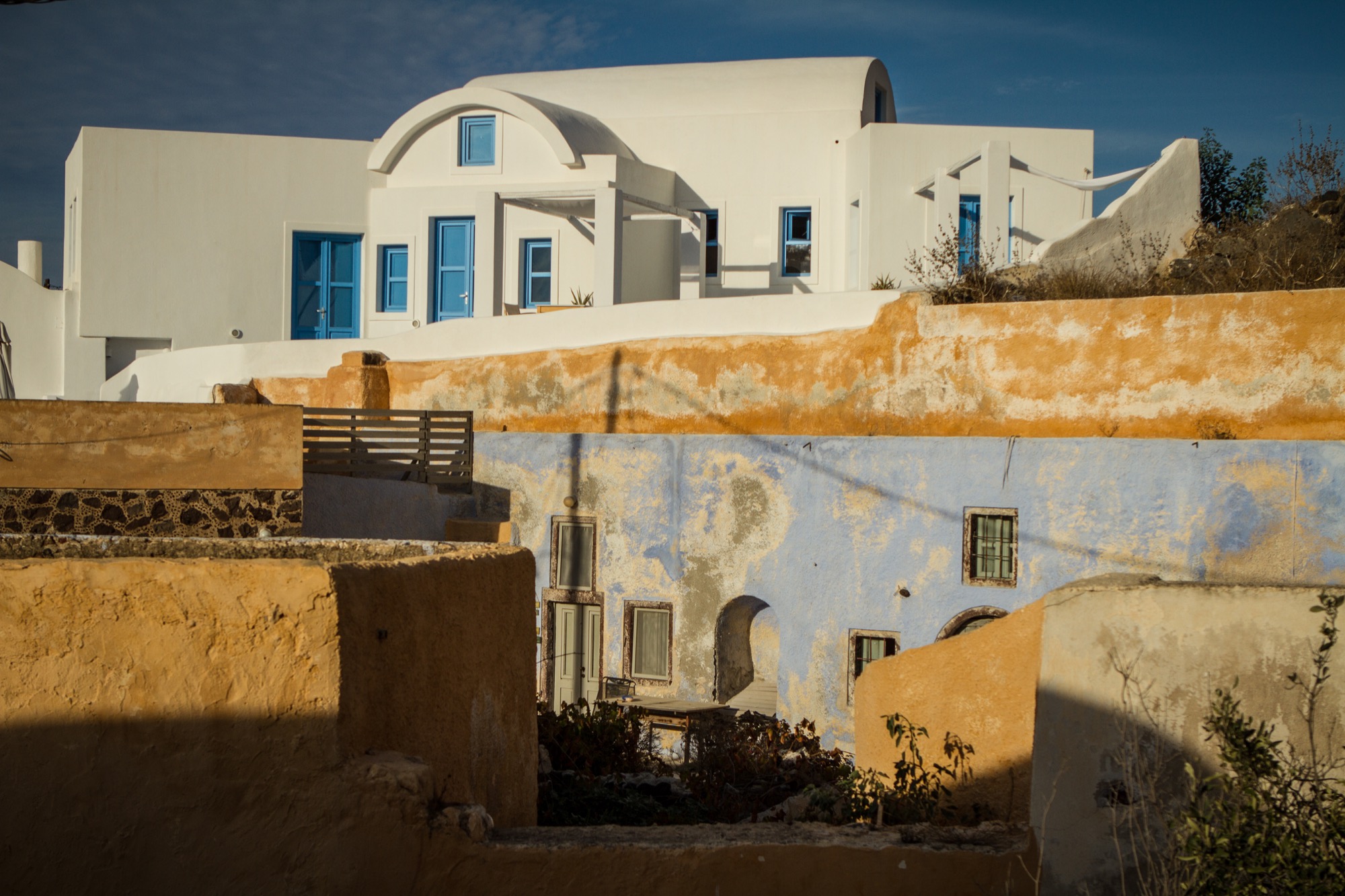 Avant dernière étape avant d’en finir avec Santorin pour cette fois : Finikia. Ce joli petit village s’étend du côté opposé à la caldeira, dans l’ombre touristique de Oia. On n’est pourtant qu’à quelques encâblures mais ici tout est plus calme, endormi, en cours de réfaction. Le coin a du potentiel, clairement.