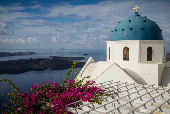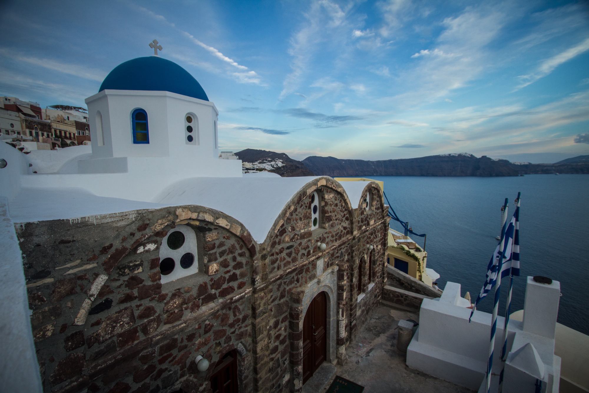 Entre Thira, Firostefani et Imerovigli, mon choix est dans tous les cas fait depuis le premier voyage et c’est le dernier village que je préfère, pour son calme d’une part mais aussi pour ses vues dominantes sur la caldeira et ses villages. Jugez plutôt, la vue depuis ma chambre et depuis les quelques toits et ruelles avoisinants, surplombant l’église du village.