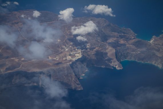 Le lendemain, je me mets à bâbord dans l’appareil. Technique d’habitué dira-t-on. Pas de décollage en spirale cette année mais toujours cette vue incroyable à ma gauche en survolant Sifnos (oh, Sifnos !) et Milos. Santorin est unique. J’y reviendrai. Encore et encore. Il reste tellement d’îles à découvrir dans les Cyclades, de toute façon, ça mérite bien un nouveau passage sur les flancs de cet incroyable volcan.
