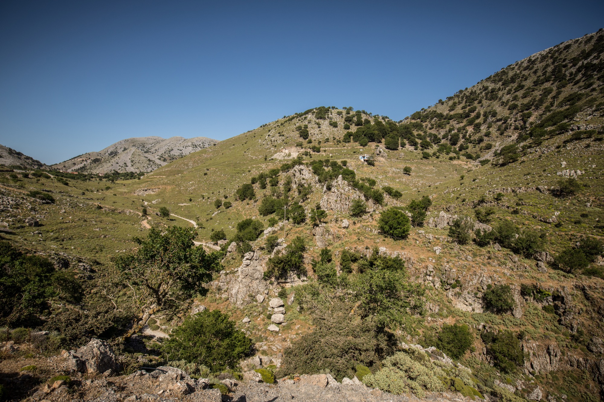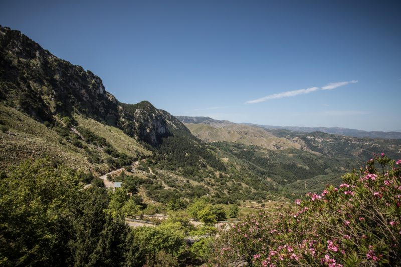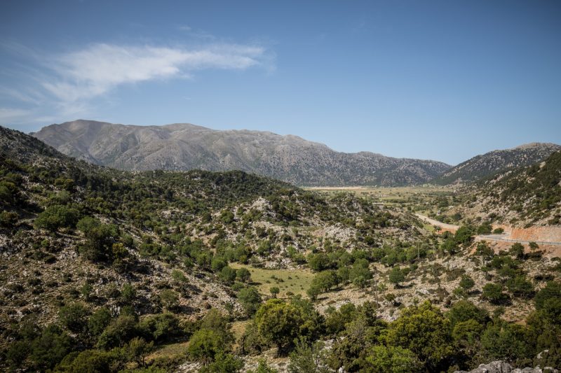 Je prends la route d’abord en direction du plateau d’Omalos, repassant devant les gorges d’Agia Irini et apercevant au loin le départ de la randonnée de Samaria, avec le Gingilos dominant le plateau verdoyant et montagnard. La route, découverte en bus uniquement, offre quelques jolis arrêts avant l’accès au plateau et autant de superbes panoramas sur l’arrière-pays de Hania au nord et sur la grande vallée de Sougia au sud.