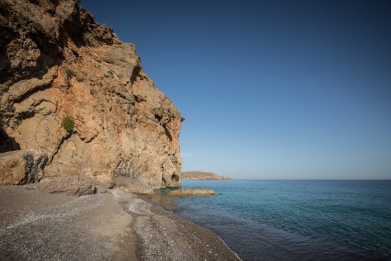 Après avoir traversé Skafia, je monte rapidement à Anopoli et de nouveau, quelle route, mais alors quelle route ! Sur le chemin, je repère une petite crique abritant un petit hôtel tout mignon et une jolie plage… voilà qui sera parfait pour la baignade du soir avant d’aller faire les courses et remonter profiter du calme de la montagne à Anopoli.