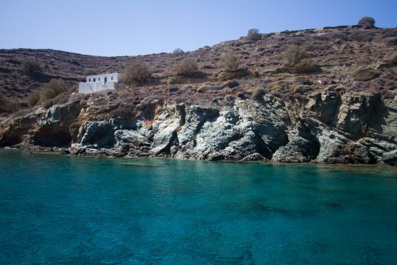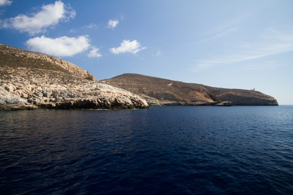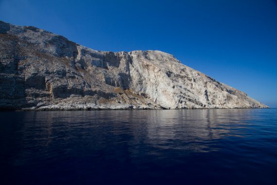 Fin de l’escale, on contourne la pointe Nord de l’île et ses deux criques difficiles d’accès, Dentro et Ambeli, le phare de Livadaki se montrant bien vite à l’horizon. De quoi se réjouir !