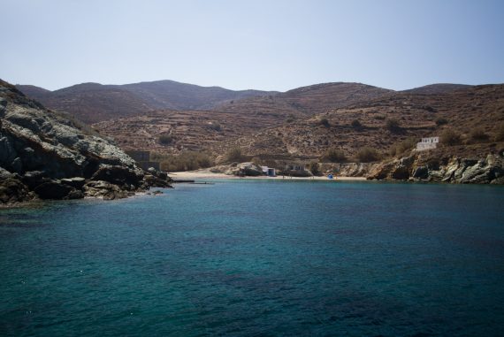 Baignade terminée. On remonte encore et encore vers le Nord, dépassant quelques plages et criques sympathiques : Vorina d’abord, Serfiotiko ensuite. On arrive enfin à St. Georgios, la plage que je n’étais pas descendu voir à cause du vent ! Le coin est paisible et il y a même de la place pour pas mal de monde. A noter pour une prochaine fois…