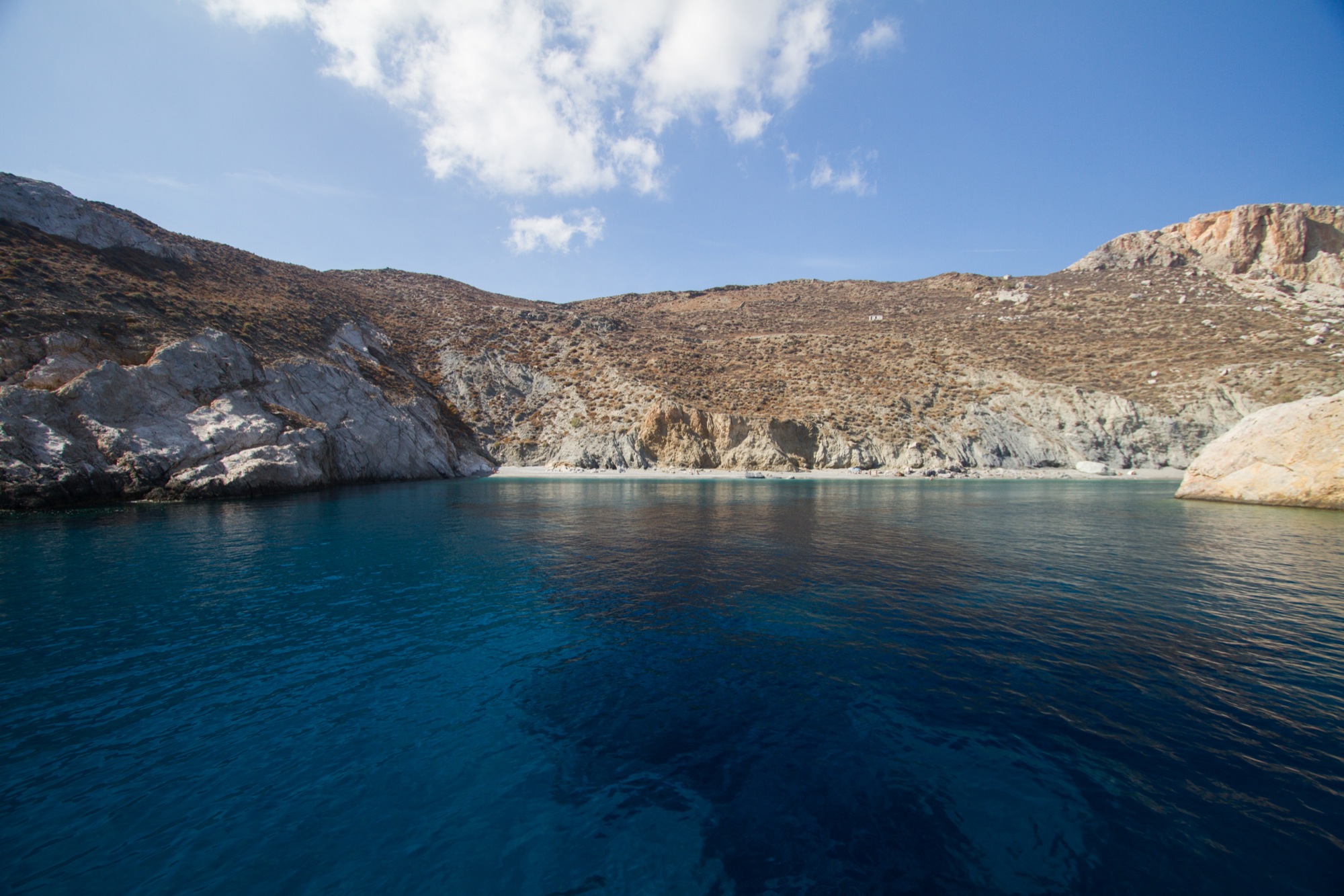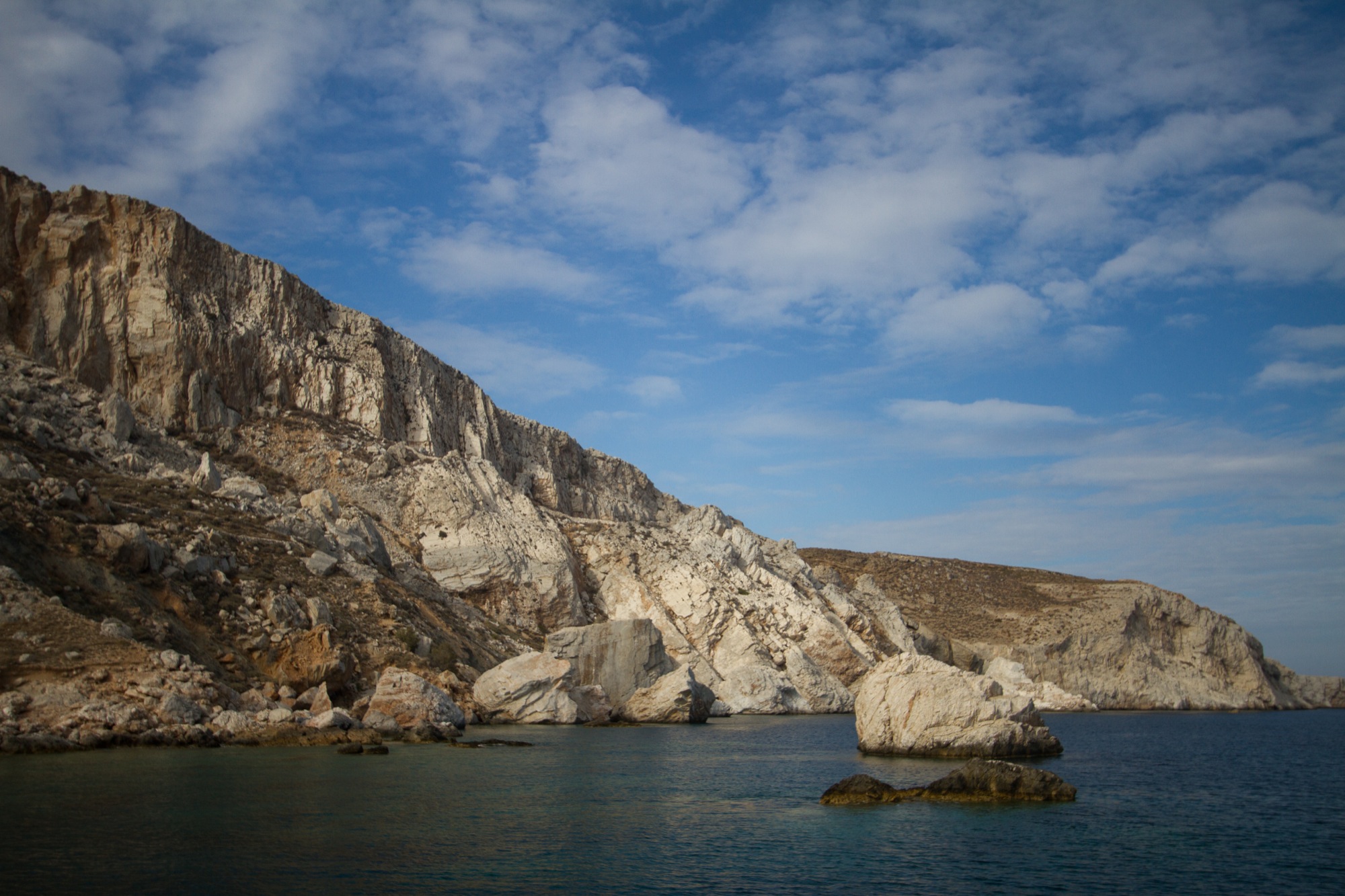 Après le tour de Milos, magnifique, j’avoue avoir hésité à faire celui de Folégandros. Il faut dire que la météo n’était pas très engageante et j’étais un peu dubitatif sur les paysages et falaises à observer. Les organisateurs de Diaplous Travel nous ont conseillé d’attendre notre avant-dernier jour sur l’île pour une simple et bonne raison (ils sont honnêtes, vous l’aurez compris) : attendre et espérer que le vent tombe ! Bingo. Le jour venu, pas une once de vent et par conséquent : le tour de l’île complet. Car oui, pour peu que le vent souffle, vous n’aurez droit qu’à une seule face de l’île et croyez-moi, ce serait dommage.
