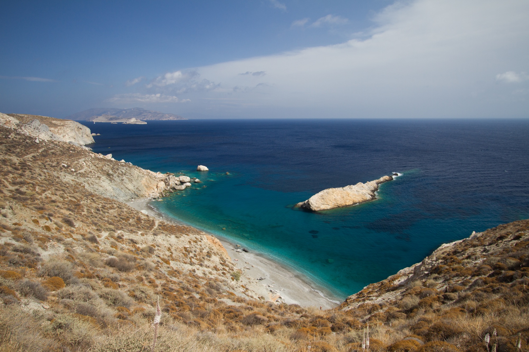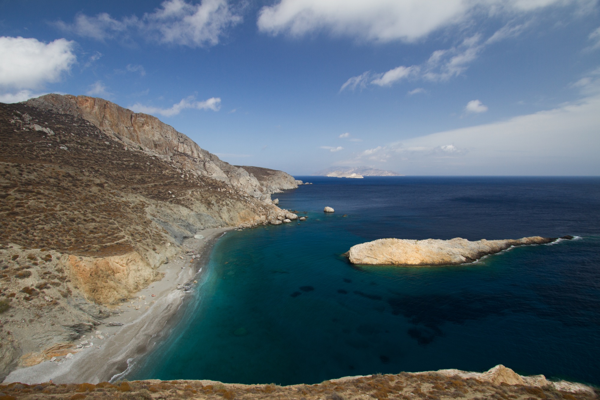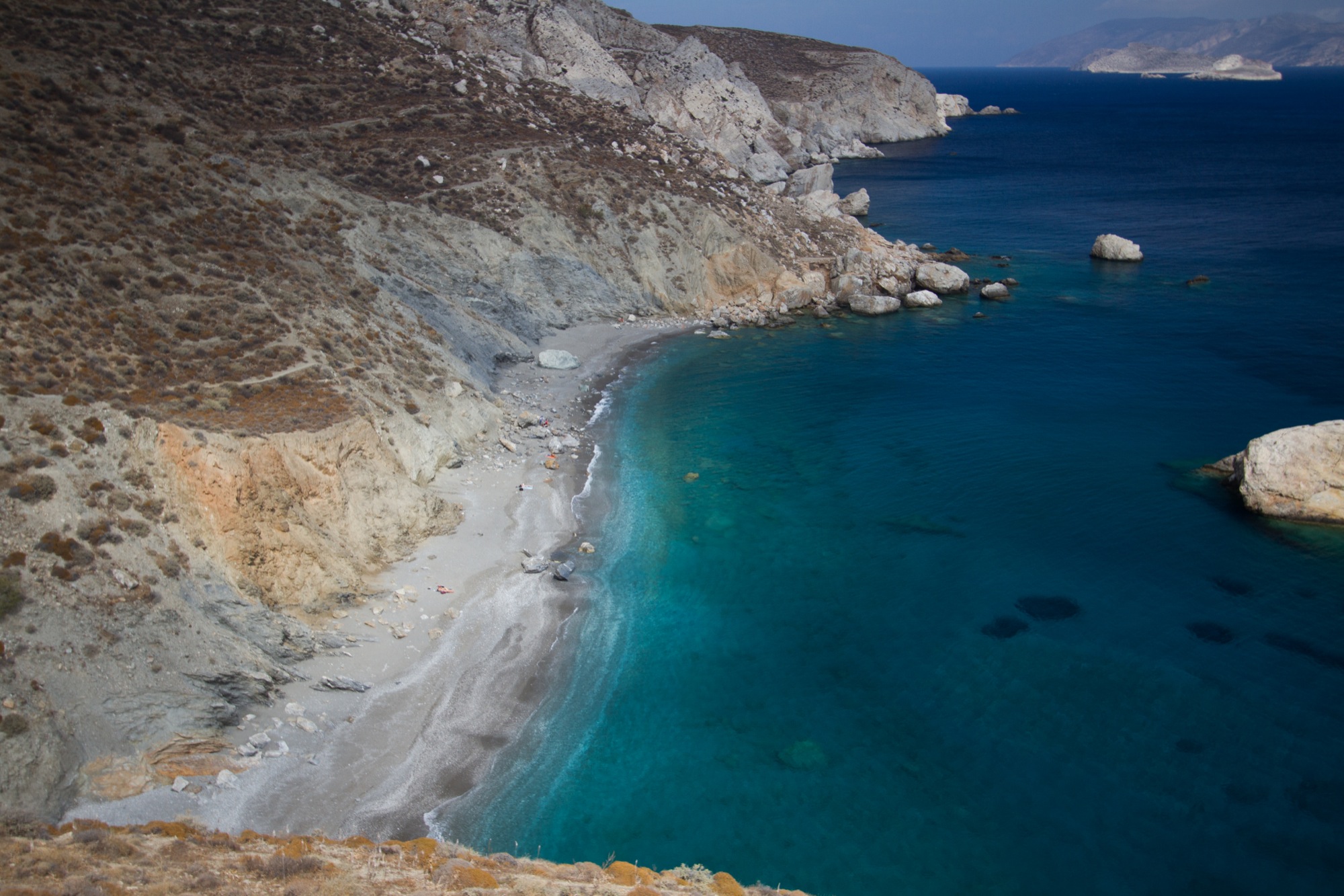 On continue, toujours plus au Sud désormais, pour rejoindre un coin connu, Angali et ses deux criques, Galifos et St. Nikolaos. On y reste un bon petit moment, avec toujours la même répartition sur la plage : près de l’église, les habillés. Près de la falaise, les tous nus. Drôle. Mais on s’est tellement habitués !