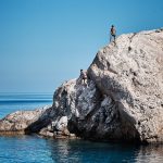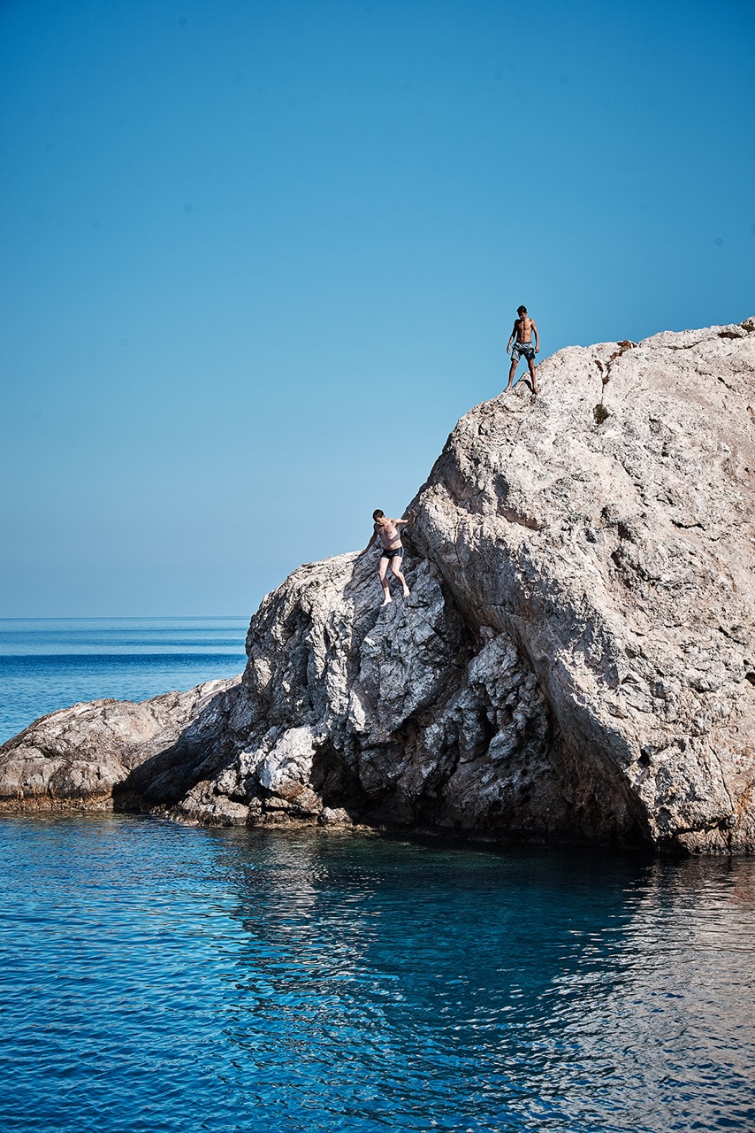 Voilà, je vous remets quelques images supplémentaires, non pas de la balade en bateau qui s’est achevée là, mais du lendemain, avec la traversée de quelques beaux paysages peuplés de vieilles bicoques où les exilés politiques étaient cantonnés fut un temps. Ah, et puis en parlant du gros rocher, on peut en sauter, justement ! Attention à ne pas se faire mal, cela va de soi.