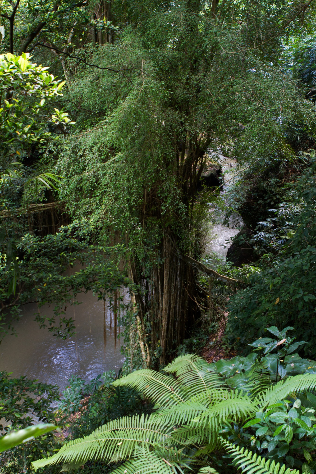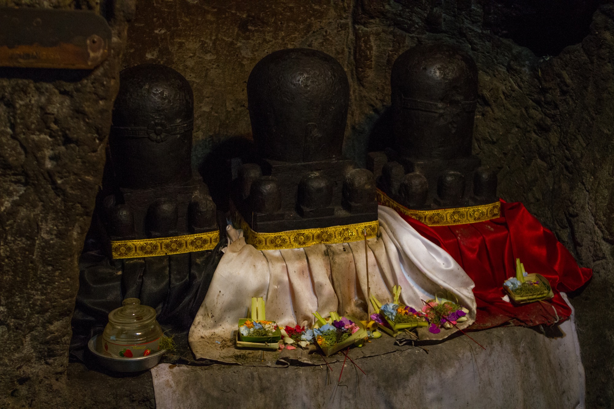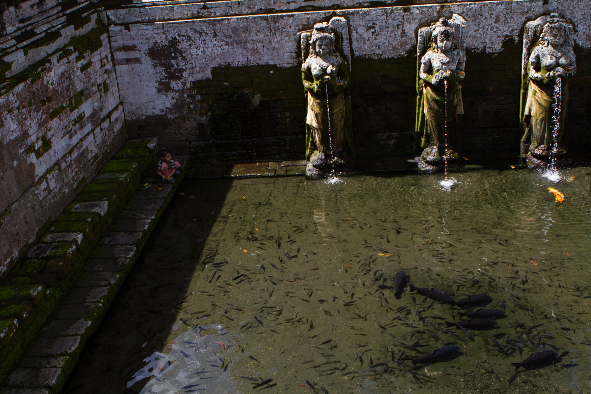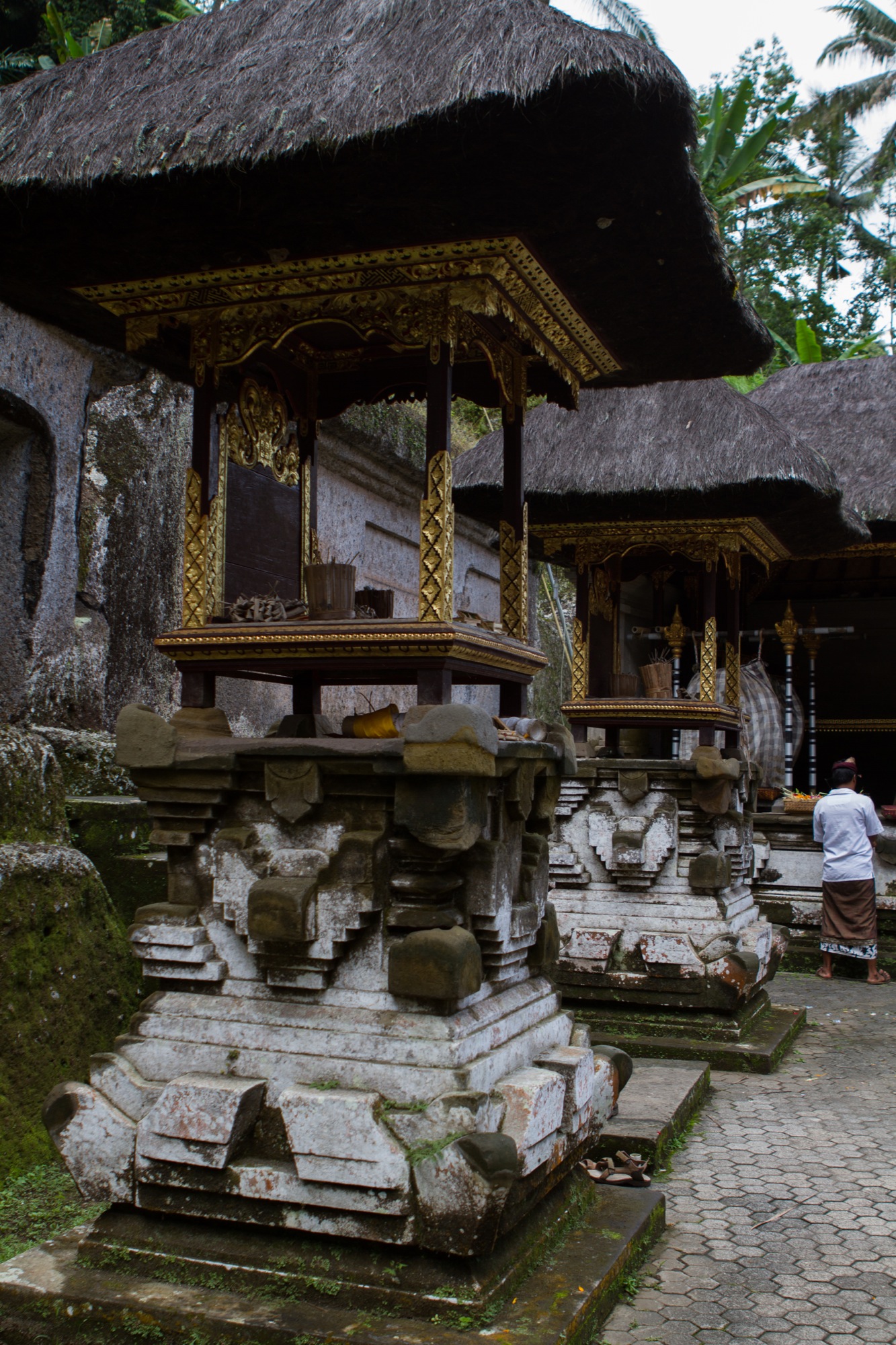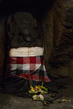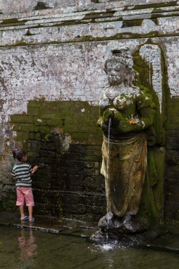Mais bref, parlons maintenant de Goa Gajah. Ses bassins et ses sources sont censés être sources de bienfaits et sont supposés apporter un renouveau et une jeunesse presque éternelle à qui s’y baigne souvent et vient y faire ses offrandes. On pourra alors se demander quel âge pouvait bien avoir la fillette qui se baladait là… Autre curiosité dont le temple tire son nom : la grotte à l’Éléphant ! Il n’y a pas d’éléphants sur Bali et pourtant, c’est bien une idôle de l’animal que l’on retrouve à l’intérieur de la grotte, après avoir franchi son impressionnantes et colossale porte. Il faut également prendre le temps d’aller explorer le contrebas du temple et de se balader dans la forêt tropicale avoisinante. Ce sera l’occasion de faire une pause et de se cacher du soleil implacable de Bali avant de passer à la visite suivante !