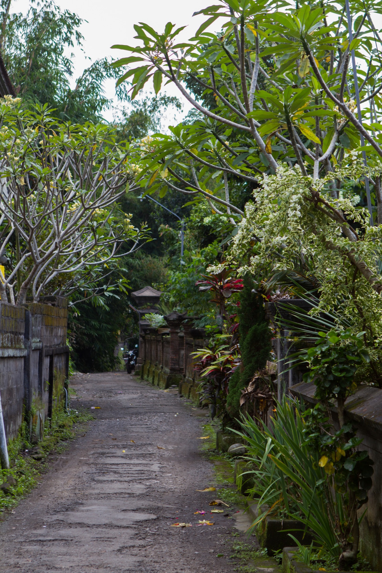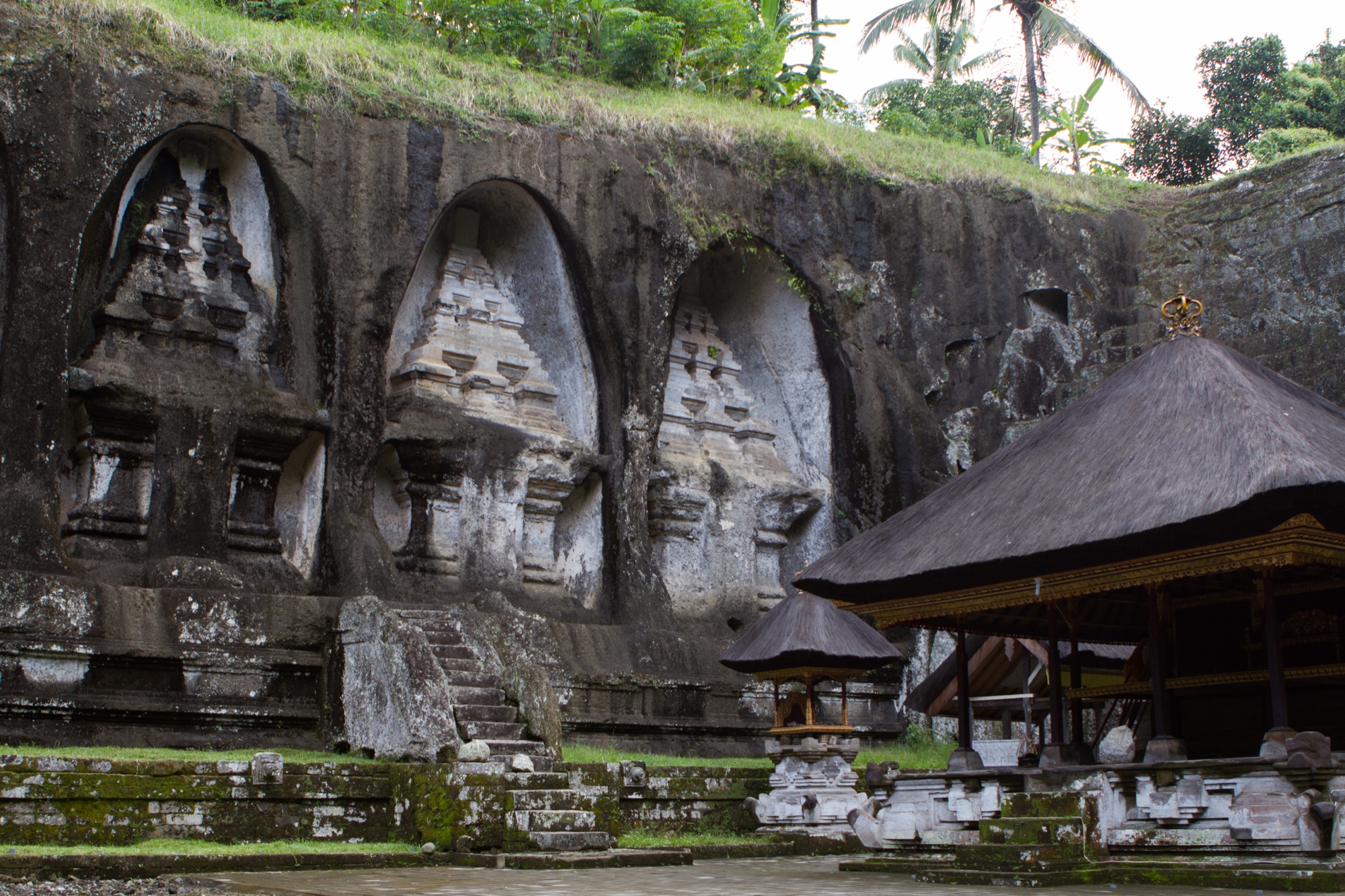Parmi les très nombreux temples que l’on peut visiter à Bali, il y en a plusieurs qui sont très facilement accessibles depuis le centre d’Ubud. C’était d’ailleurs l’occasion de tester tranquillement le postulat de départ du voyage, à savoir l’utilisation quotidienne d’un scooter pour rayonner autour du cœur paisible de l’île de Bali. Je suis donc parti au milieu de la circulation pour trouver ma route, tant bien que mal, pour les temples de Goa Gajah et Gunung Kawi ! Cela aura été une journée assez tranquille puisque les deux sites sont situés à faible distance d’Ubud et je me serai ainsi familiarisé avec la conduite balinaise. Premier constat avant de parler temples : c’est bordélique mais fluide. Les autos et les multiples scooters ne sont pas du tout agressifs, cela roule parfois un peu dans tous les sens mais je n’ai jamais perçu d’agressivité, que ce soit entre balinais ou vis à vis des touristes. Certes, je sais rapidement m’adapter à une circulation en me calant à sa vitesse mais même les plus lents des balinais / touristes n’étaient pas insultés – moqués – violentés. En gros : pour peu que l’on soit bien concentré (comme toujours quand on conduit ?), aucune inquiétude à avoir en roulant en scooter à Bali dans toutes les zones évoquées dans mes articles. Seul point noir en ce qui me concerne : les multiples camions dénués de filtres à particules roulant à faible allure ! Il faut oser apprendre à les dépasser et ne pas hésiter à le faire et il faut surtout penser à prendre une écharpe ou un masque quand on roule derrière, à moins de vouloir ressembler à Tom Cruise sortant de sa voiture dans Jours de Tonnerre. Testé et désapprouvé.