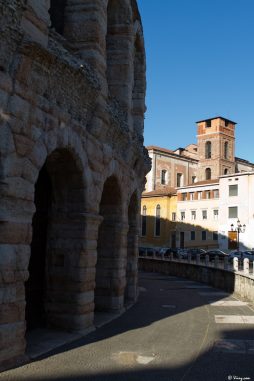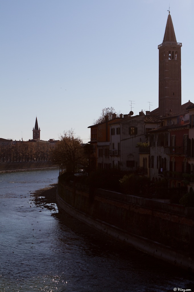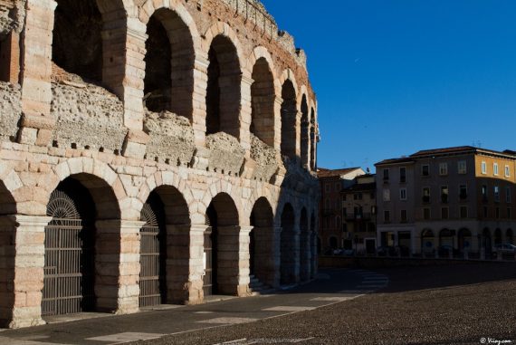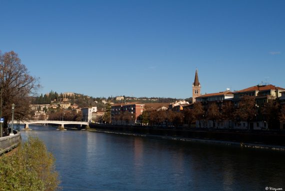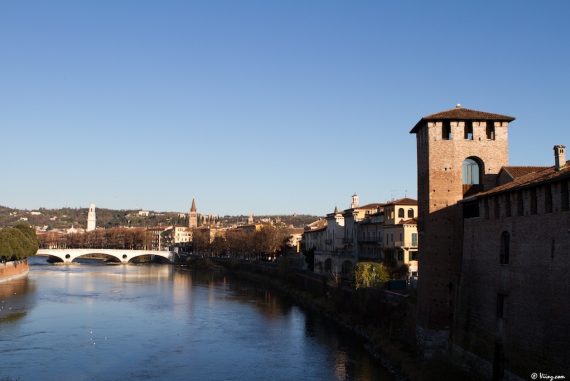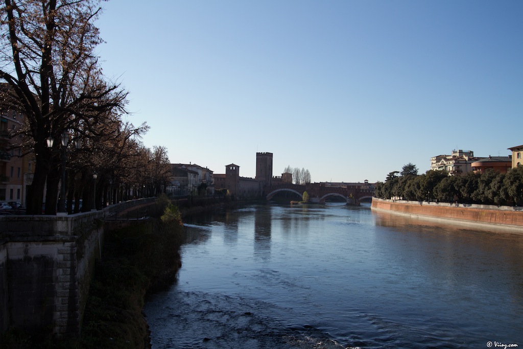 Alors que je suis en train de profiter de ma dernière journée à Rome (avant un probable retour ? ah bah voilà j’ai publié mon article en avance, boulet), je continue mon récit des vacances de Noël avec la visite de deux villes importantes : Verona et Vicenza. C’est la première prise de contact du voyage avec les grandes villes du nord de l’Italie, celles qui ont fait la réputation du pays et aussi sa richesse, lumières attirant toutes les attentions sur elles, tentant d’occulter la mocheté absolue de la gigantesque plaine du Pô. Verona n’échappe pas à cette règle même si sa proximité avec le lac de Garde rend son approche plus belle et supportable que celle des autres villes dont je parlerai dans de futurs billets. Reste qu’une fois la voiture garée, les premières images de la ville sont à la hauteur de sa réputation.