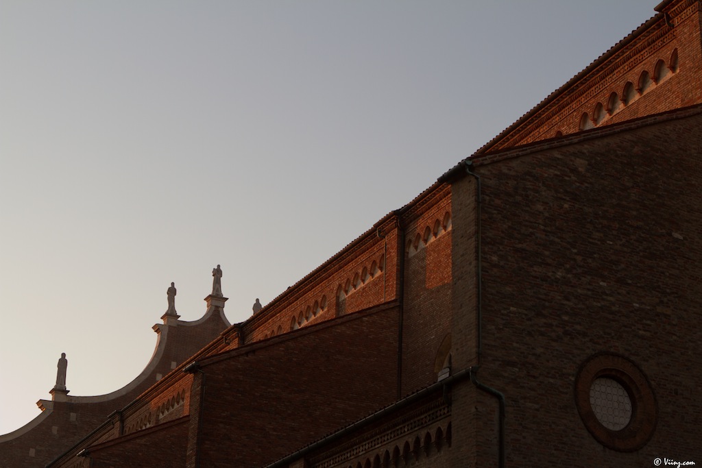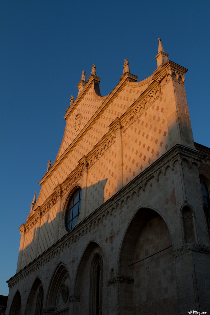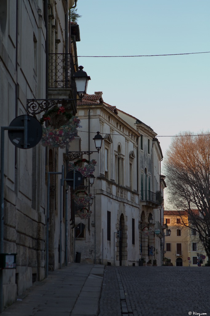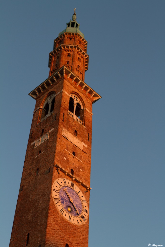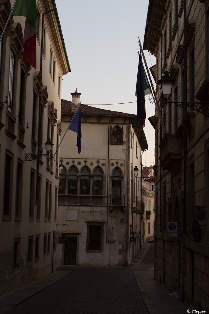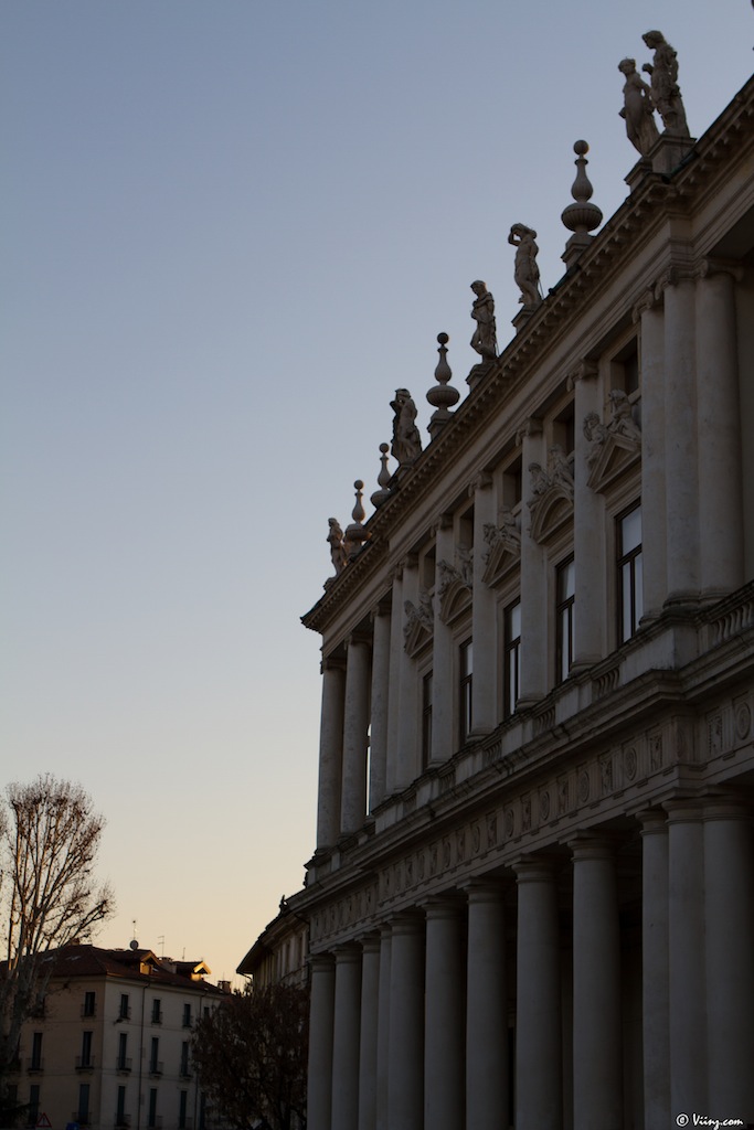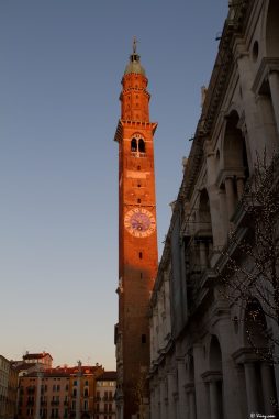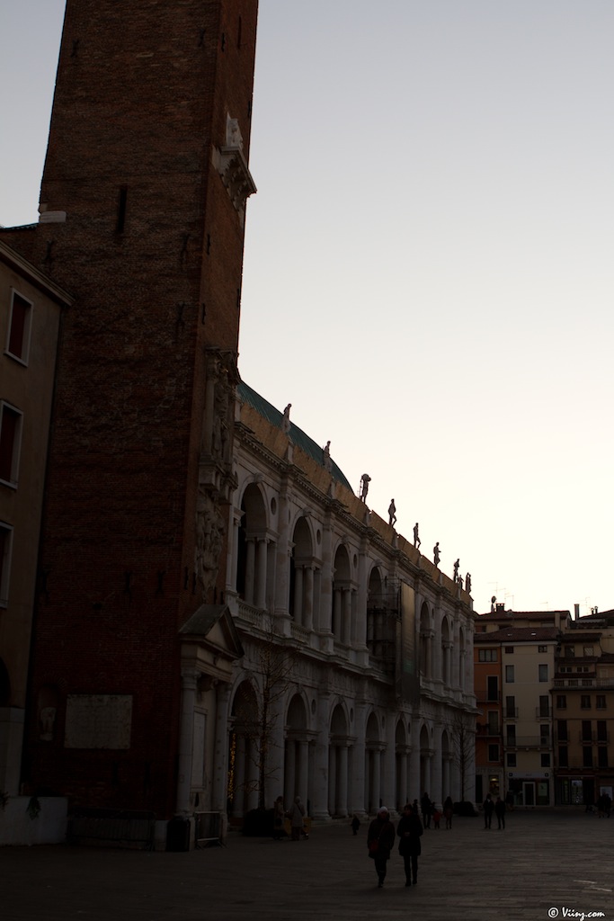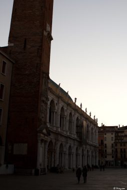 Enfin, Vicenza… rapidement traversée à pied pour cause de fin de journée, une nouvelle belle surprise après la splendide Verona. Tout était fermé, aussi avons-nous simplement arpenté les rues et profiter de la lumière tombante sur les pierres rougeoyantes de la Piazza dei SIgnori et autres édifices monumentaux.