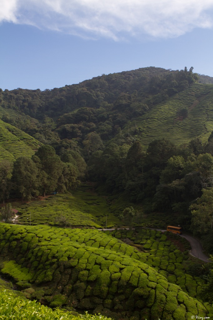 La journée commence par la plus grande plantation de thé de la région : la plantation Boh. Petites routes sinueuses et bosselées pour y arriver, l’amortissement fatigué du Land n’aidant pas trop à la digestion du café ! Le guide nous lâche à quelques encablures de la propriété afin que nous puissions faire les derniers mètres à pied et profiter du paysage, une attention très agréable dont tous ne profitent pas.