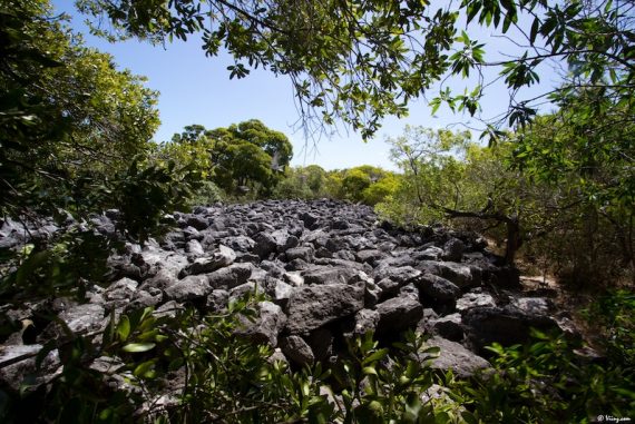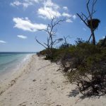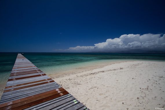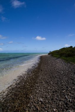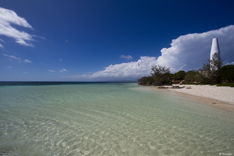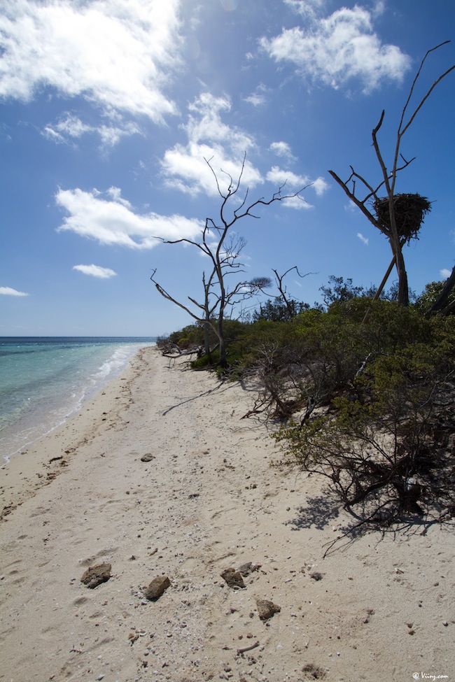 Le wharf de l’îlot Signal et ses planches plus ou moins décolorées nous accueillent. Nous sommes seuls. Personne, paumés sur un bout de sable, de corail et de pierre en plein milieu du lagon, les côtes de la Nouvelle-Calédonie au loin… L’îlot Signal est ainsi baptisé car c’est ici que la première balise signalant la ville de Nouméa a été installée. Il abritait aussi l’extraction du corail servant à produire de la chaux comme en témoignent ces tas de corail découpé au cœur de l’île sur lesquels les sternes s’ébattent. D’un côté, le platier sans fin et sa plage de corail noirci, les nids d’aigles marins (j’en ai eu un à quelques mètres de moi… quelle majesté !) et la fameuse balise. Le petit tour de l’île et la baignade dans le micro lagon du platier sont une claque supplémentaire.