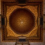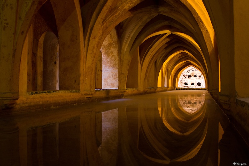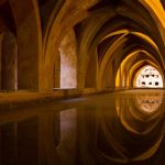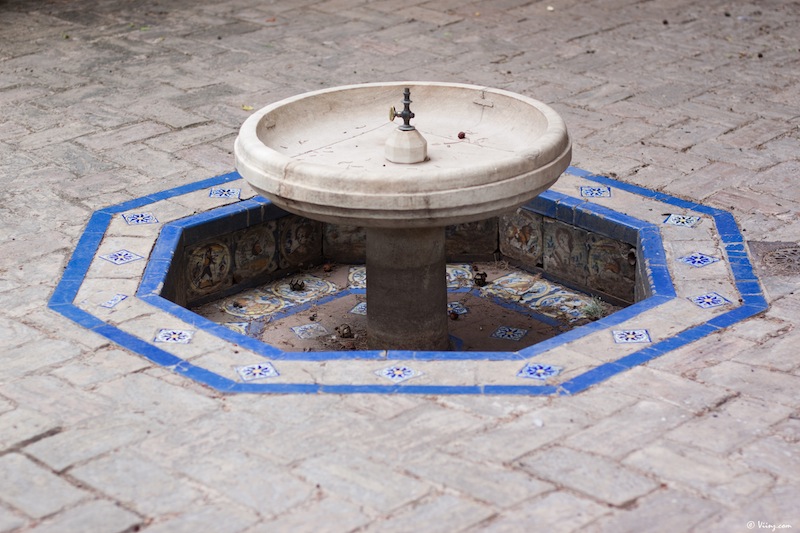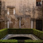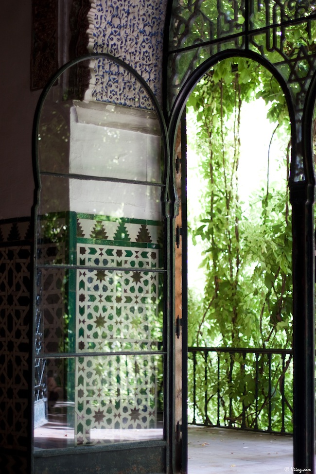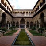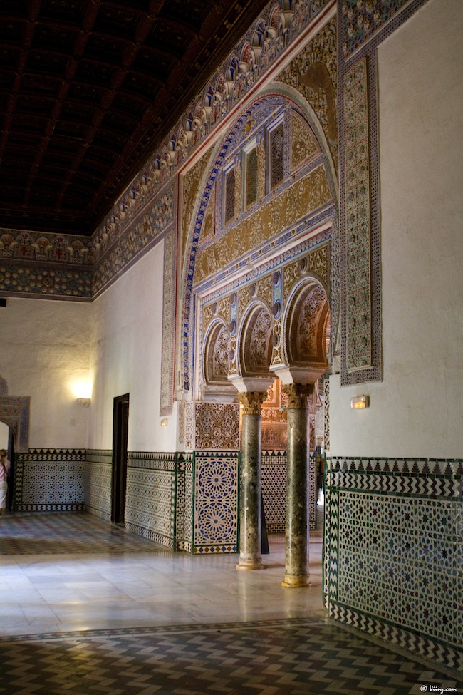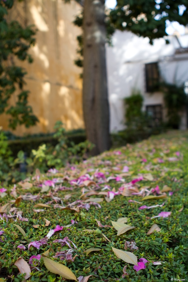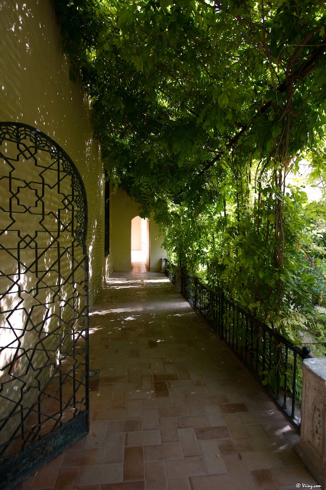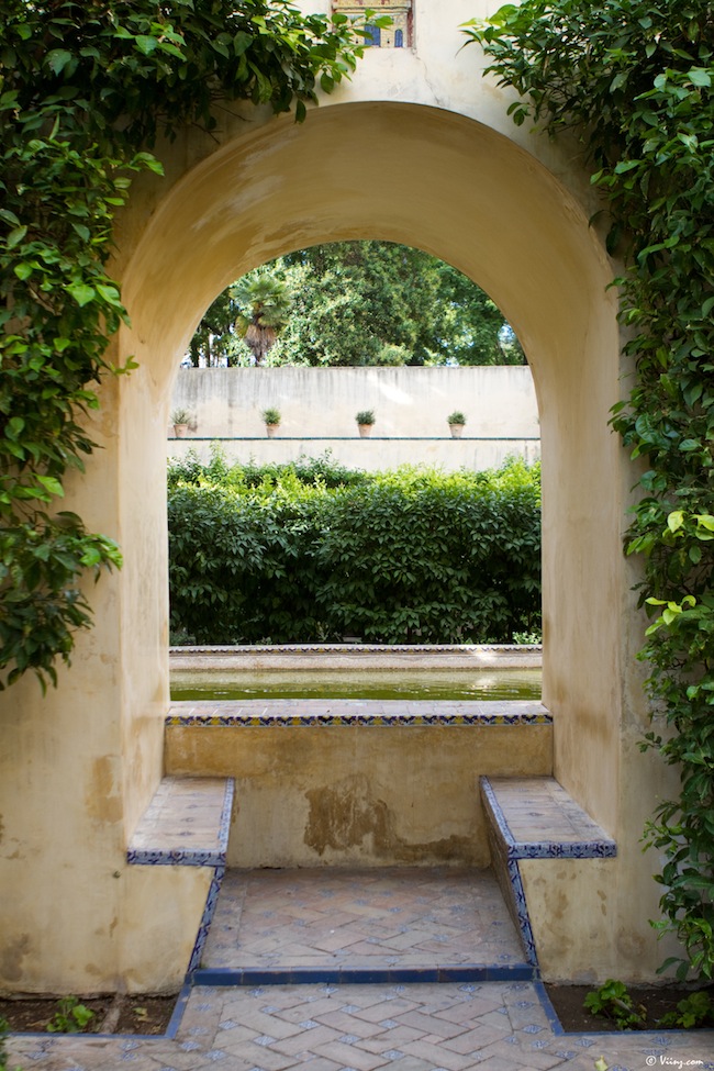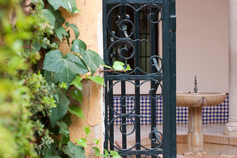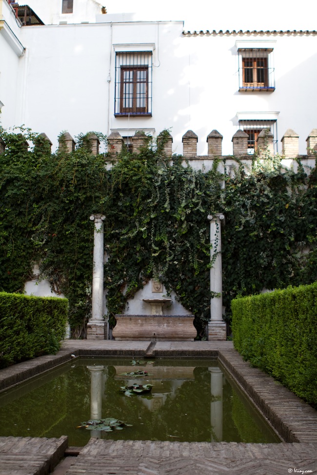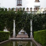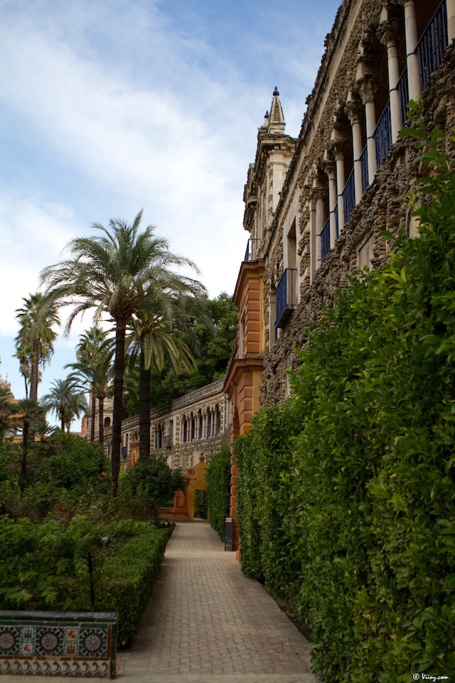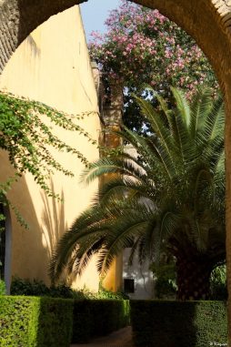 On redescend, on traverse la cour des orangers, on admire une dernière fois la Giralda au travers du feuillage et direction le château royal de l’Alcazar, moins visible mais tellement plus grand, caché derrière ses murs d’enceinte. La visite commence par un ensemble de petits espaces arborés donnant sur une place centrale, très moderne d’apparence.
