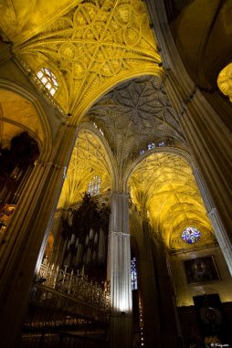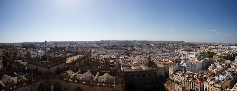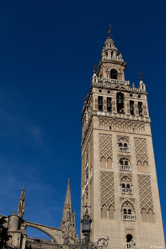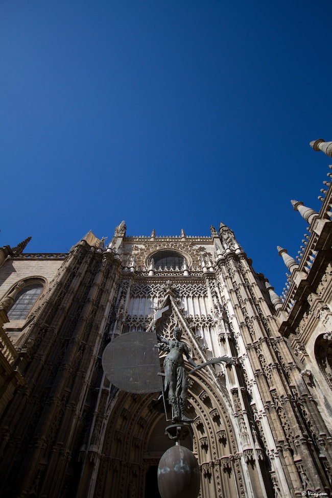 Difficile de passer à côté de cette construction fantastique qui domine la ville du haut de ses 90 et quelques mètres ! Ancien minaret de la mosquée, converti au catholicisme via l’adjonction de quelques éléments superflus qui la défigurent plus qu’autre chose, la Giralda, cette fameuse tour, est un appel à entrer dans la cathédrale pour atteindre son sommet. Et la cathédrale n’a pas à rougir face à elle !