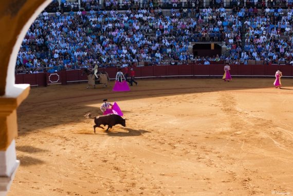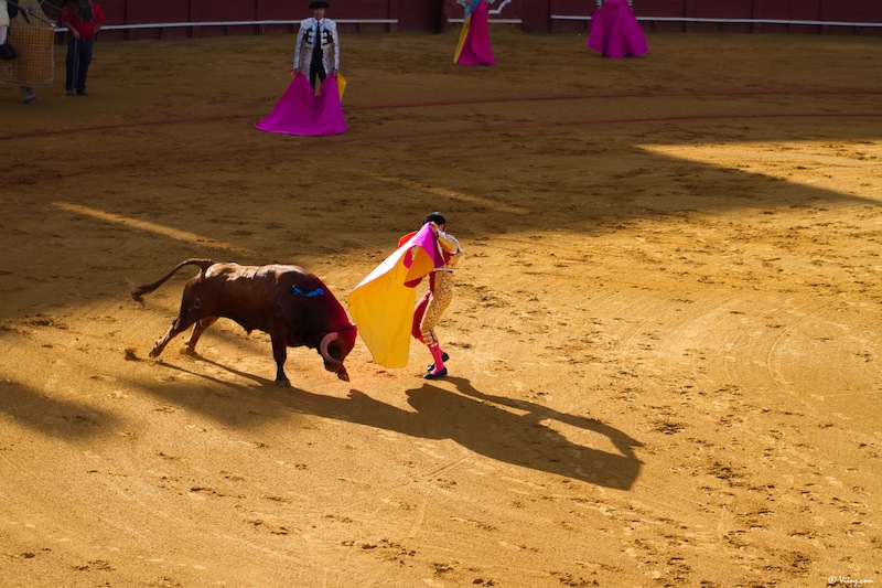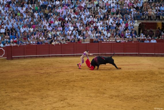 C’est cher… très cher même, alors on se met en hauteur, 34€ la place tout de même. Y aller donc. Pourquoi me direz-vous ? Parce que pour juger, pour se faire un avis, il est toujours bon de voir, de vivre, de ressentir, d’expérimenter. De prime abord, je suis contre la corrida et je me suis réjouis de son interdiction à Barcelone même si ce jugement incluait une belle part de politique d’opposition catalane / castillane… La mise à mort me choque, la danse avec le taureau m’éblouit en revanche tout comme l’ambiance supposée dans l’arène. Alors autant en avoir le cœur net et profiter de ce passage en Andalousie pour vivre une corrida en tant que spectateur et non plus en tant que simple contradicteur ou opposant. Certains jugeront peut-être qu’ils n’ont pas besoin d’y aller pour haïr la chose, je les comprends et grand bien leur fasse mais pour ma part, je suis quelqu’un qui aime ressentir, que ce soit en bon ou en mauvais.