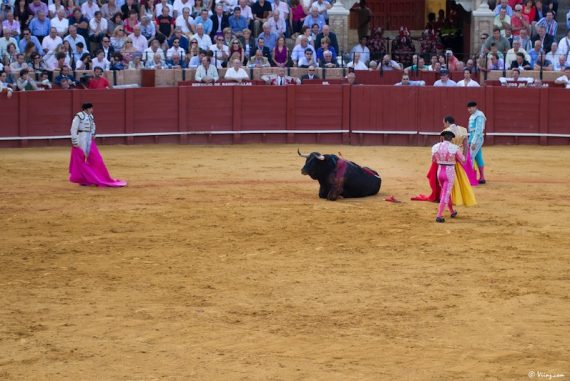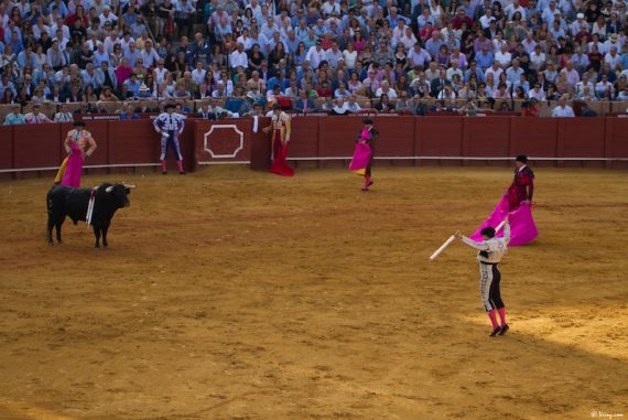 Jusqu’ici tout va bien comme dirait l’autre… Le spectacle est beau, la foule génère une ambiance électrique tout à fait positive, on piaffe d’impatience de voir le taureau débouler dans l’arène et commencer la lidia. Et c’est bien ce qui arrive.