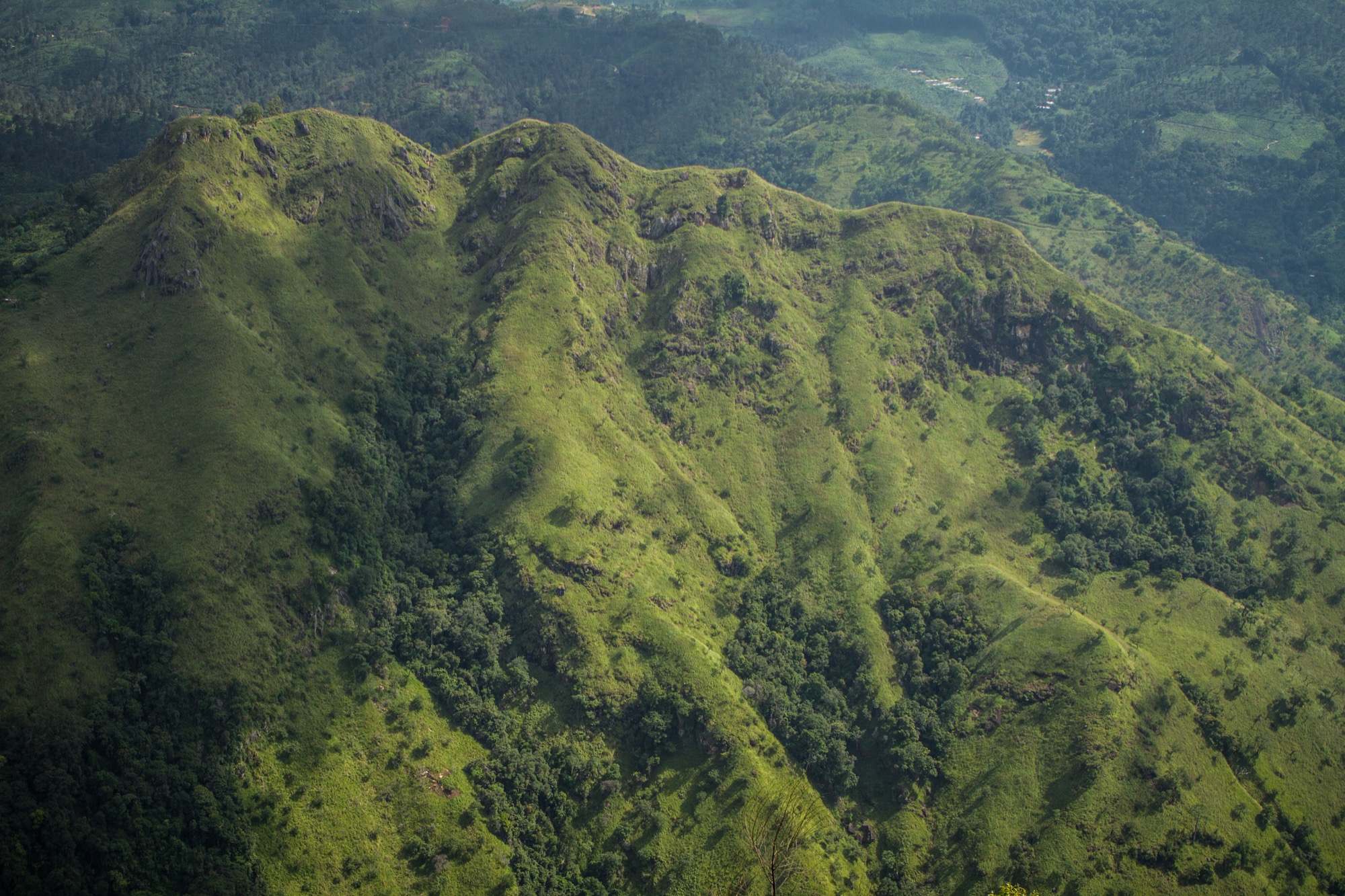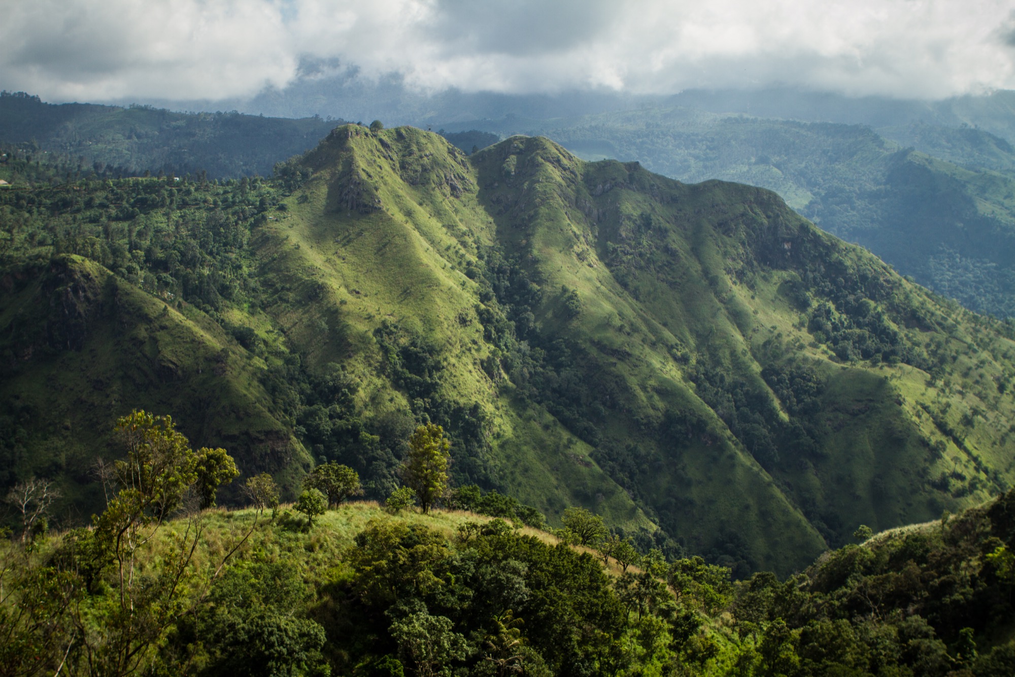 Après une nouvelle session à grimper au milieu des arbres, le premier point de vue est atteint. On découvre la vallée encaissée au sommet de laquelle Ella s’établit et surtout, le Little Adam’s Peak est pile en face ! Le fait est que l’Adam Rock est plus grand, bien plus grand, mais on y reviendra.