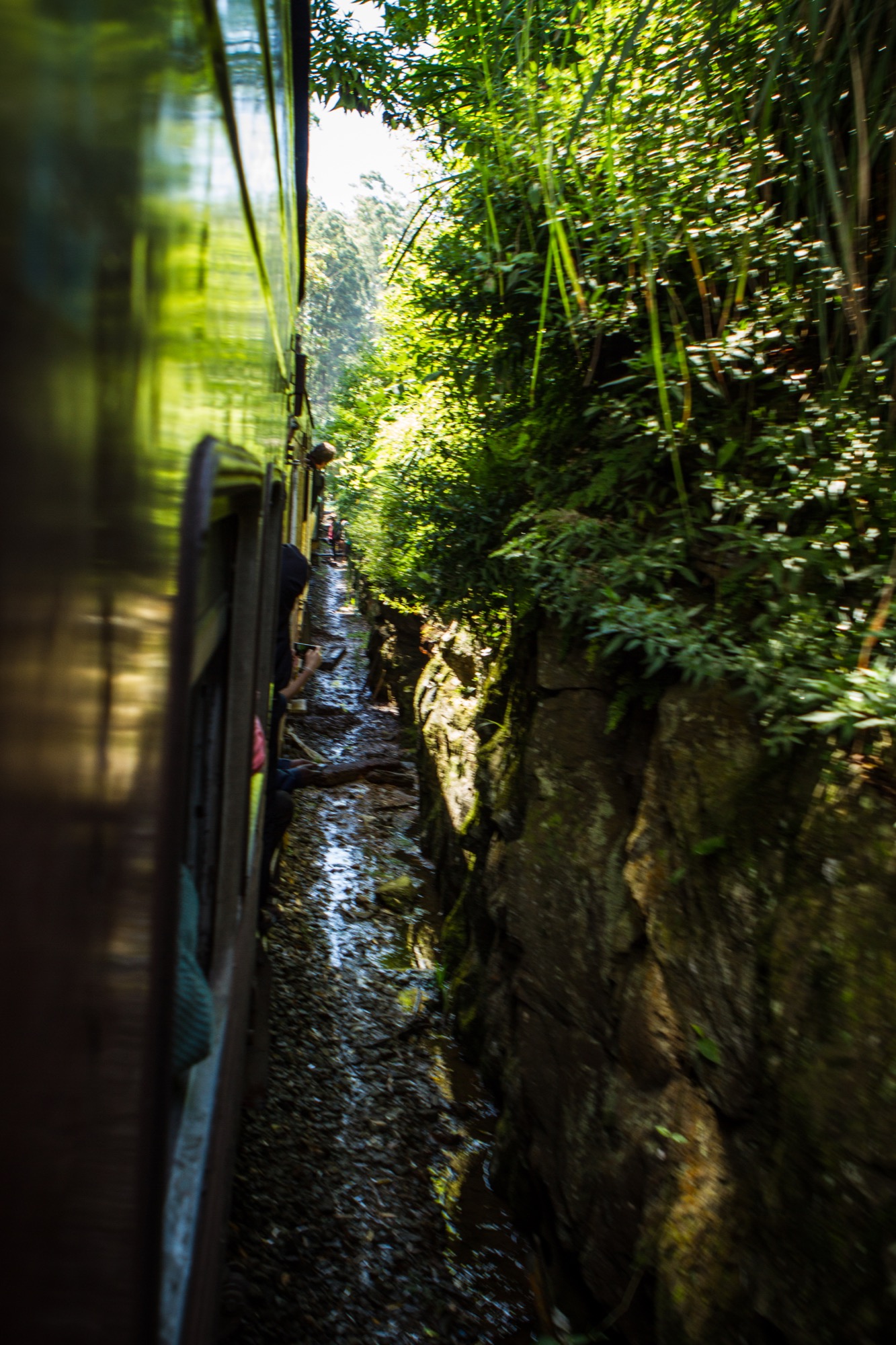 Je comprends en tout cas bien la logique de ces touristes décalés : le paysage d’abord à droite du train dans le sens de la marche, puis à gauche sur la dernière section à l’approche d’Ella est incroyable. On circule parfois sur des crêtes venteuses avec d’un côté comme de l’autre des rizières et forêts à perte de vue. Quelques tunnels dans lesquels les sri lankais hurlent en rigolant, d’autres sections creusées à même la roche, à ciel ouvert et dans lesquelles le train se loge tout pile. Ce trajet est spectaculaire, à n’en pas douter, quel bonheur ! Attention toutefois, notez qu’il y a des slow comme des fast trains ! J’ai opté pour le premier et oui, slow veut bien dire lent, voire très lent.