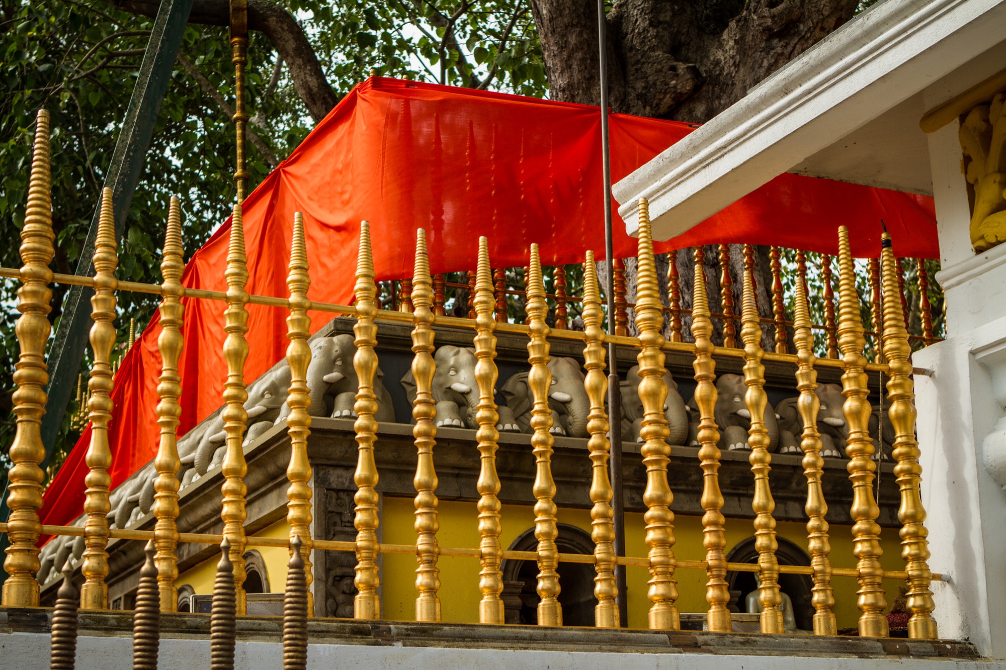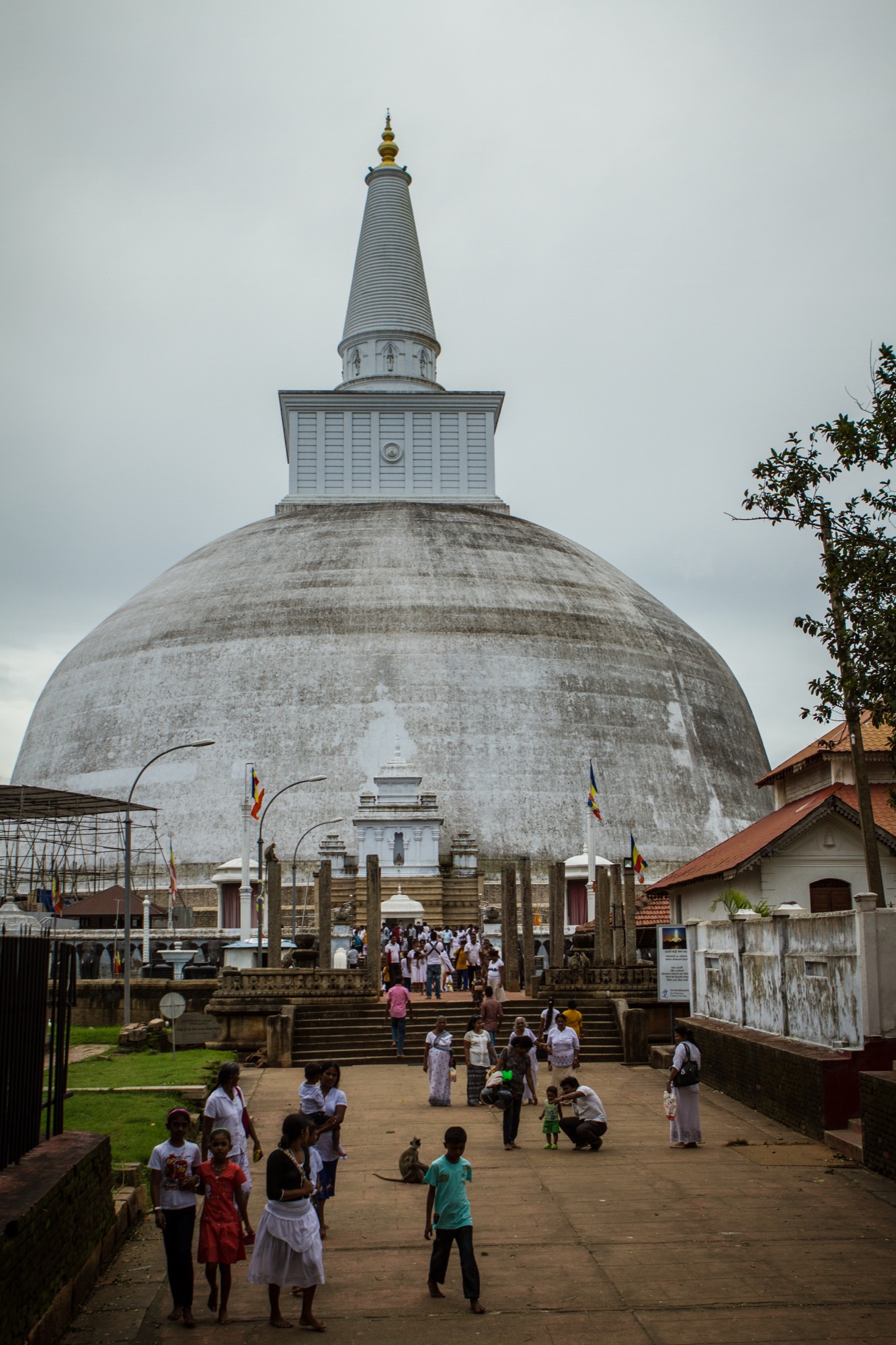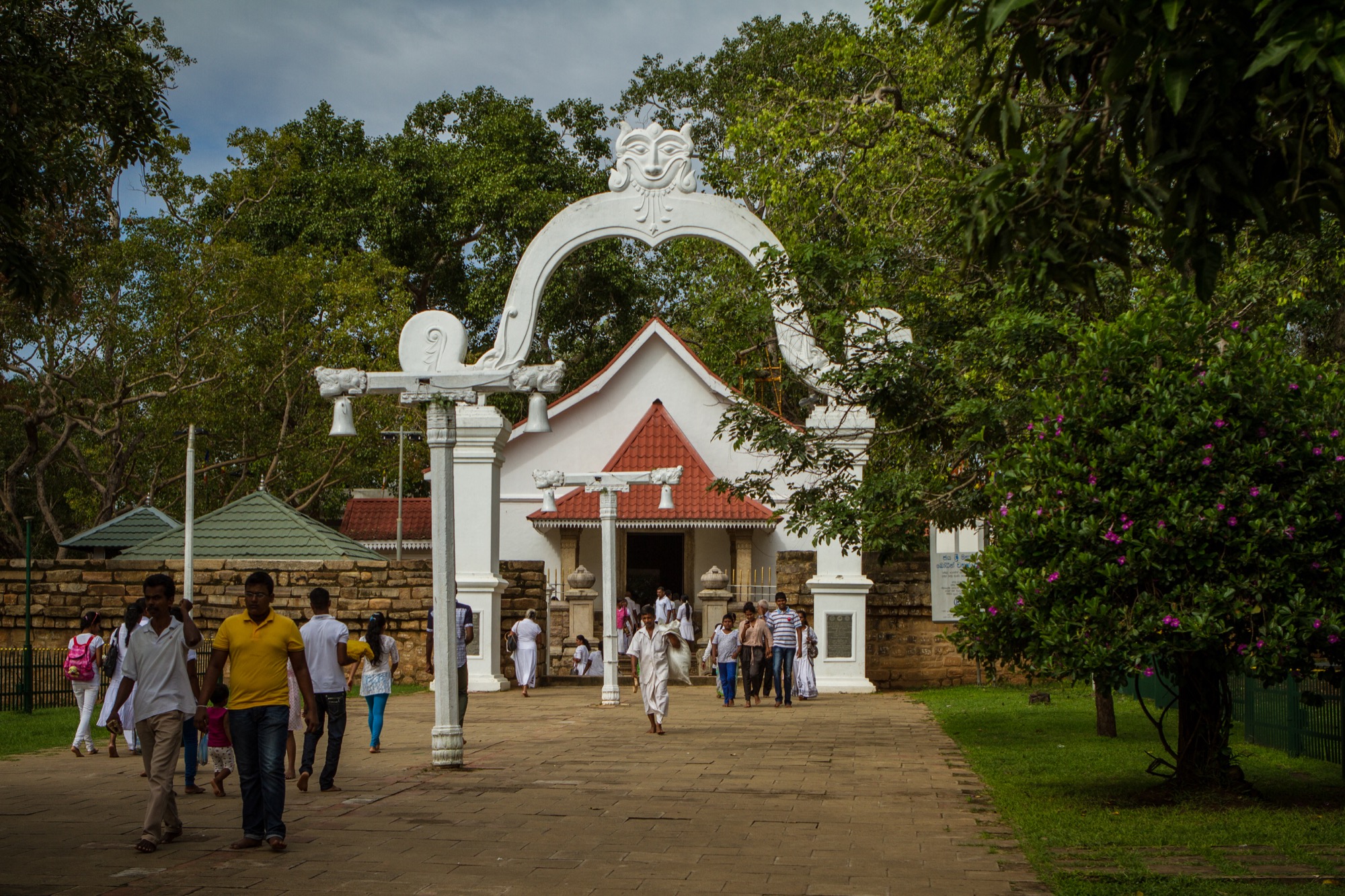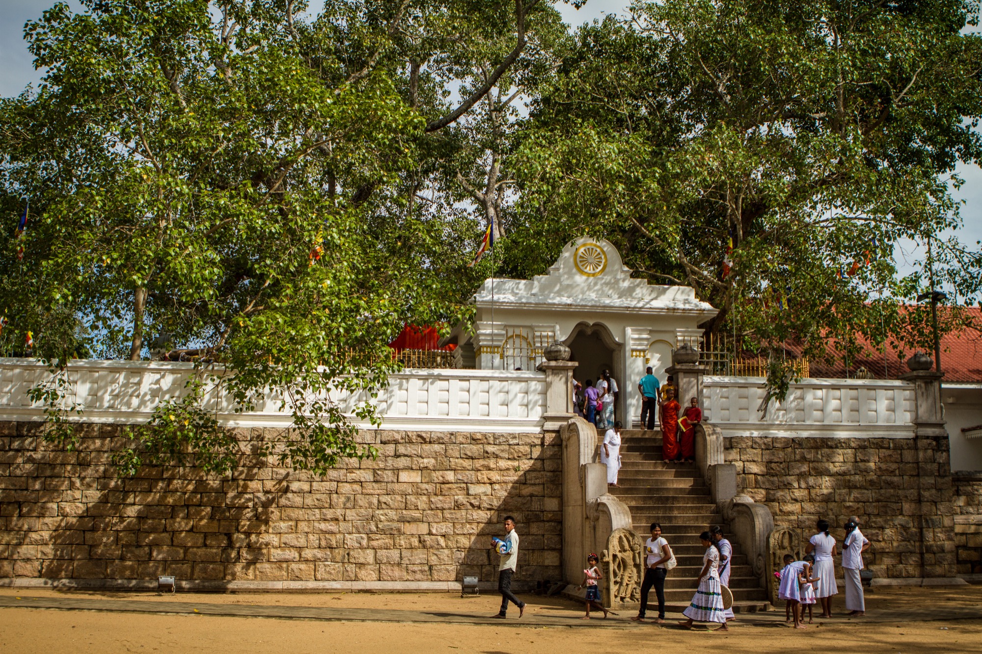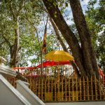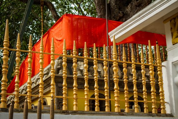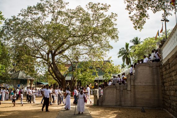 Le premier site visité est un peu à l’écart et est tout à fait exceptionnel. Il s’agit d’un temple abritant une bouture de l’arbre de Bouddha, le Sri Maha Bohdi. Il règne ici une ferveur religieuse impressionnante, émouvante. Pieds nus, je navigue le plus discrètement possible, prenant mes photos le plus discrètement possible aussi, tentant tant bien que mal d’être transparent afin de laisser les fidèles vivre leur foi. Quelle foule ! Odeurs d’encens, de fleurs, d’offrandes, dévotion et sourires, toujours. Je ne repars pas tout à fait indemne de ce lieu, frappé par cette dévotion et par la présence de cette fameuse branche soutenue d’or.