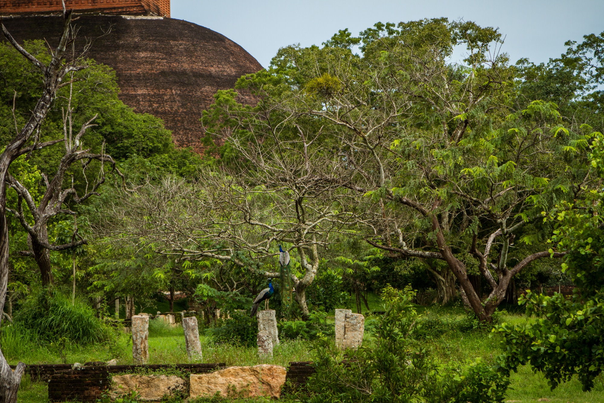 Ultime stupa, celui de Jetawana Dagoba. Entouré de jungle et situé à quelques encablures seulement du musée et point d’achat de tickets, ce stupa impressionne encore et toujours. Certes, tout cela est un peu répétitif et en fin de journée, on a un peu envie d’autre chose mais c’est beau, impressionnant. Et il y a des paons.