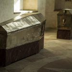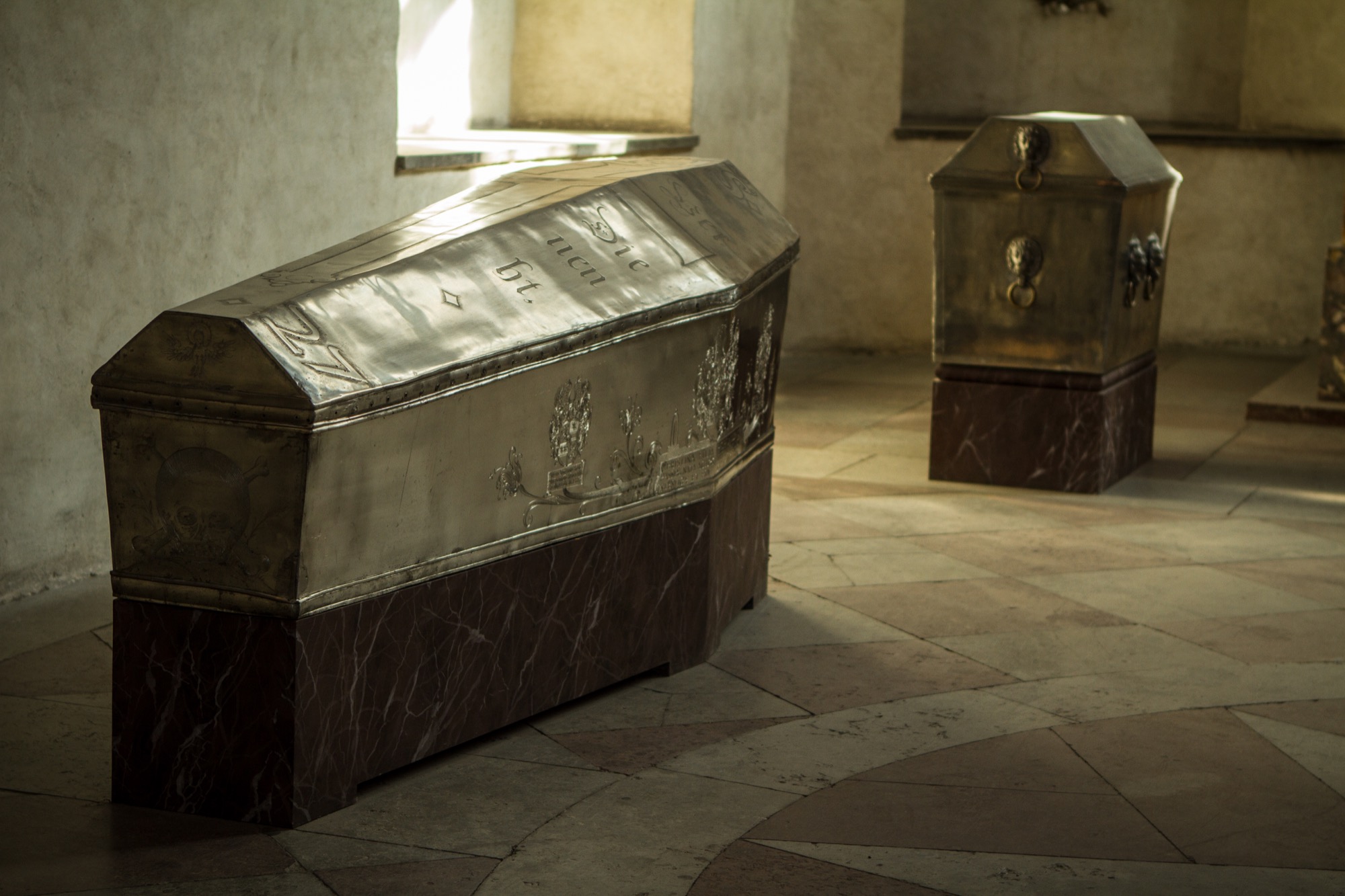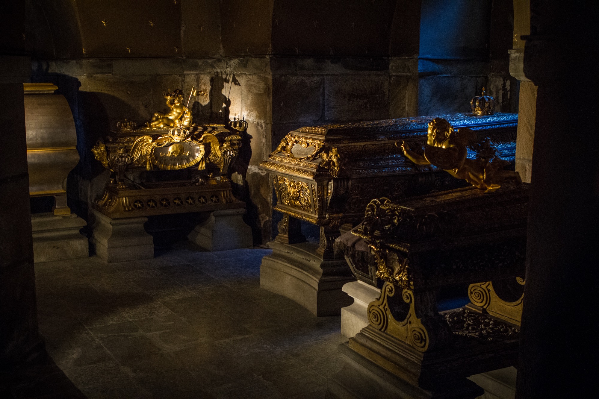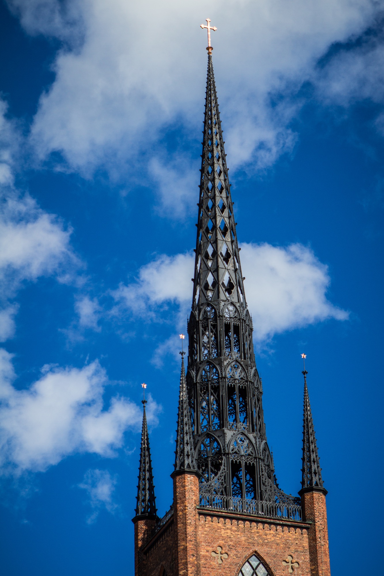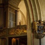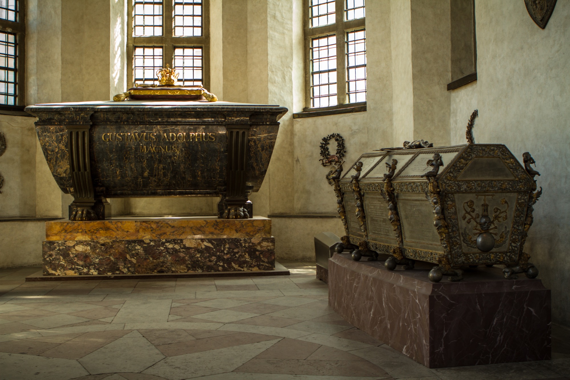 Changement d’île le temps d’une escale dans l’église de Riddarholmen (l’îlot des chevaliers) : Riddarholmskyrkan. C’est ici que sont enterrés les rois et reines de Suède depuis le XVIème siècle. Blasons et stèles partout au sol et sur les murs et petites chapelles pour les reines d’un côté, rois de l’autre avec au centre, deux splendides sarcophages, majestueux.