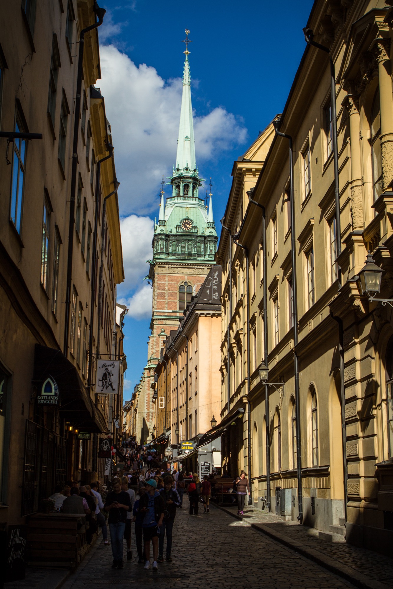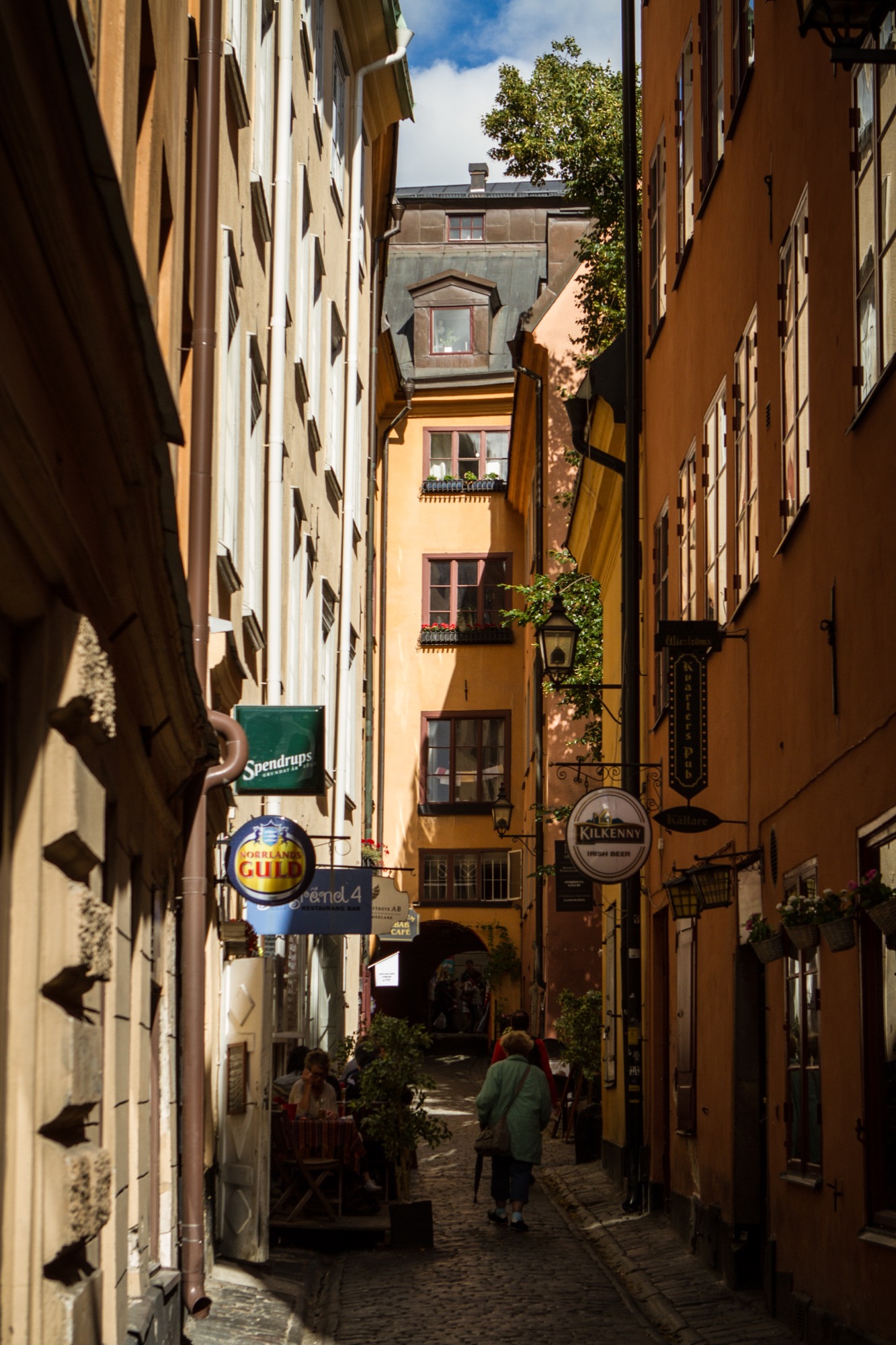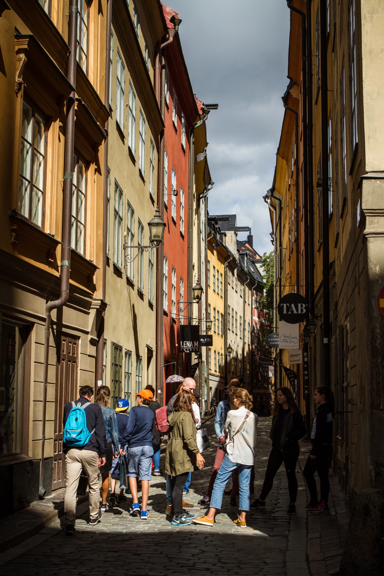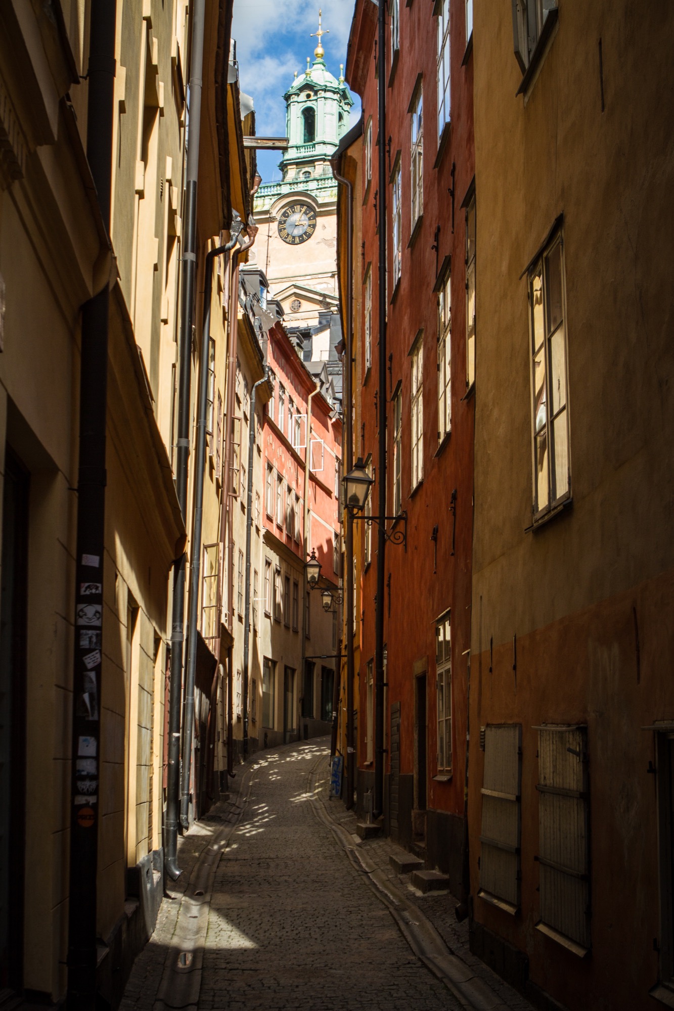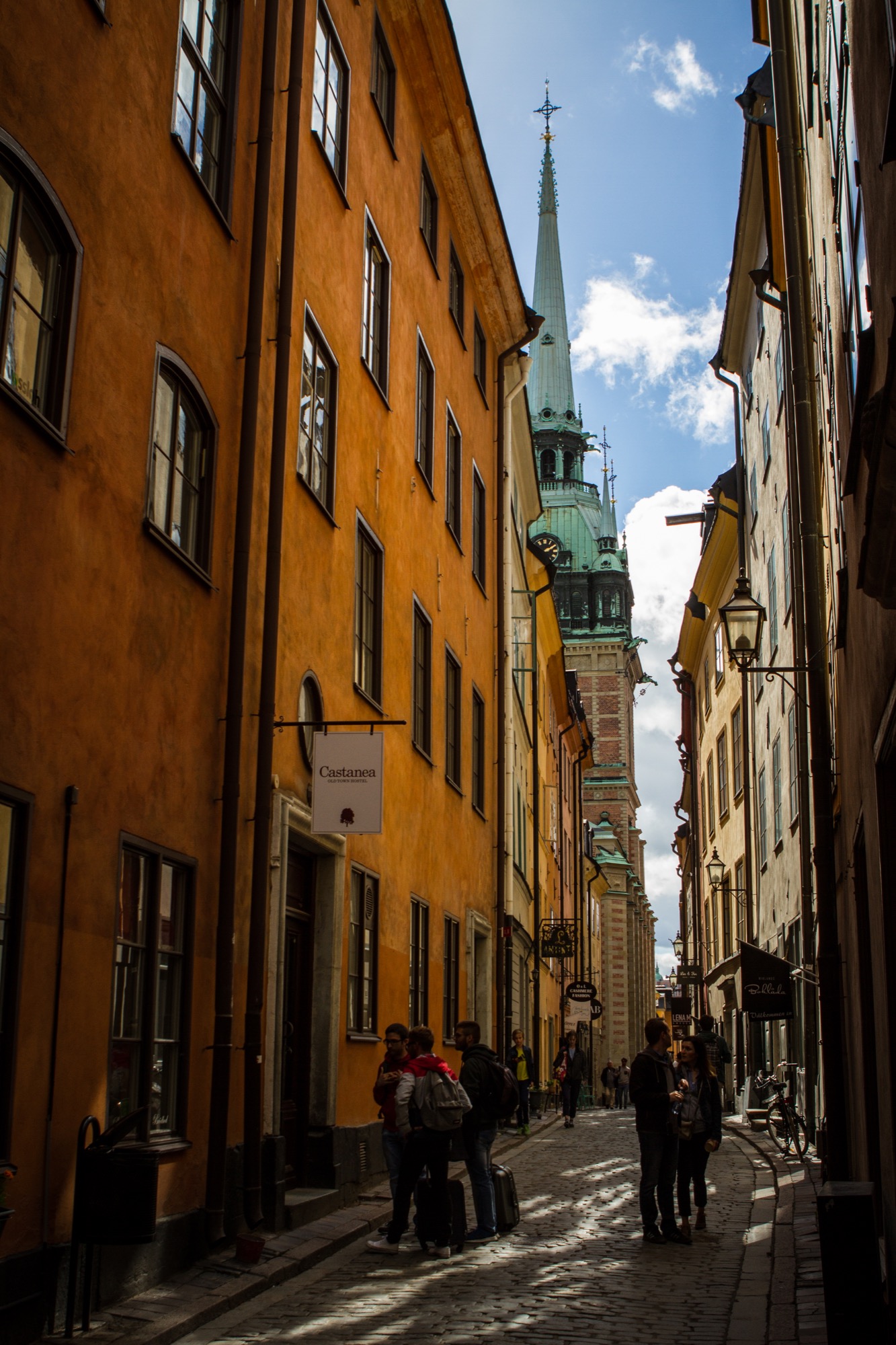 Retour à l’extérieur pour une bouffée d’air de nouveau ensoleillé. Les ruelles avoisinantes du palais sont heureusement plus belles que ce dernier. Pavées, étroites, bordées d’immeubles magnifiques notamment sur la place de Stortorget, c’est un vrai régal que de les arpenter, même au milieu du mois d’août au milieu de l’affluence touristique. Les quelques vieilles églises qui ponctuent ce parcours, ainsi que la fameuse ruelle plus étroite de la ville rajoutent un charme certain pour ce petit tour qui ne vous prendre qu’une grosse heure mais vous en mettra plein les yeux, avec un léger parfum d’Italie dans l’air, à force d’ocres et de lumières chatoyantes dans les arbres et branches ici et là.