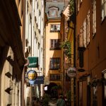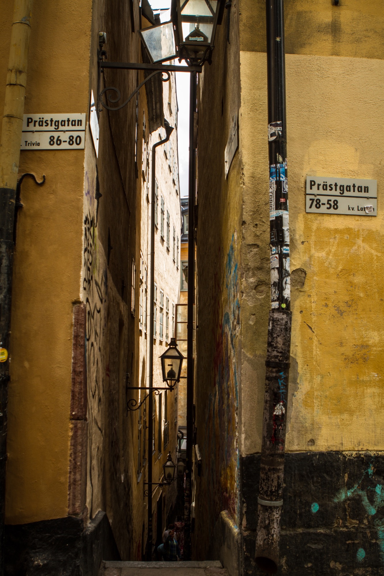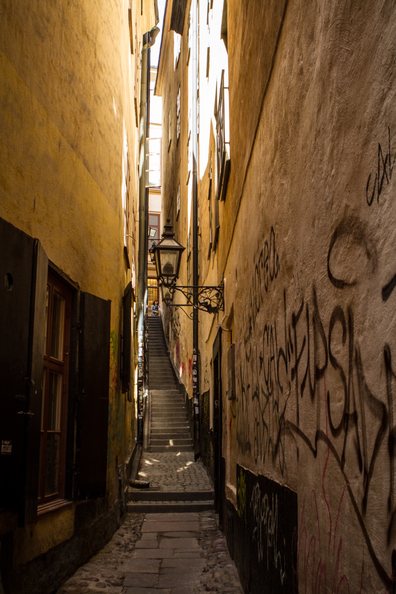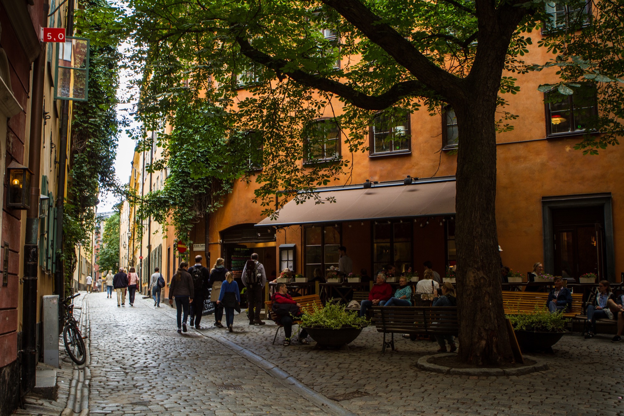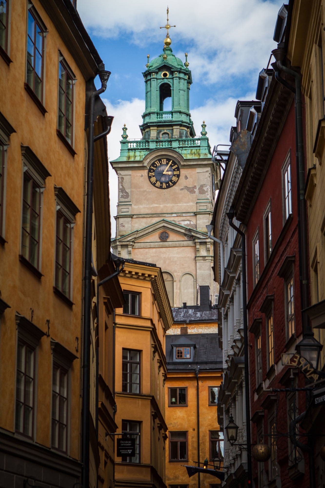Retour à l’extérieur pour une bouffée d’air de nouveau ensoleillé. Les ruelles avoisinantes du palais sont heureusement plus belles que ce dernier. Pavées, étroites, bordées d’immeubles magnifiques notamment sur la place de Stortorget, c’est un vrai régal que de les arpenter, même au milieu du mois d’août au milieu de l’affluence touristique. Les quelques vieilles églises qui ponctuent ce parcours, ainsi que la fameuse ruelle plus étroite de la ville rajoutent un charme certain pour ce petit tour qui ne vous prendre qu’une grosse heure mais vous en mettra plein les yeux, avec un léger parfum d’Italie dans l’air, à force d’ocres et de lumières chatoyantes dans les arbres et branches ici et là.