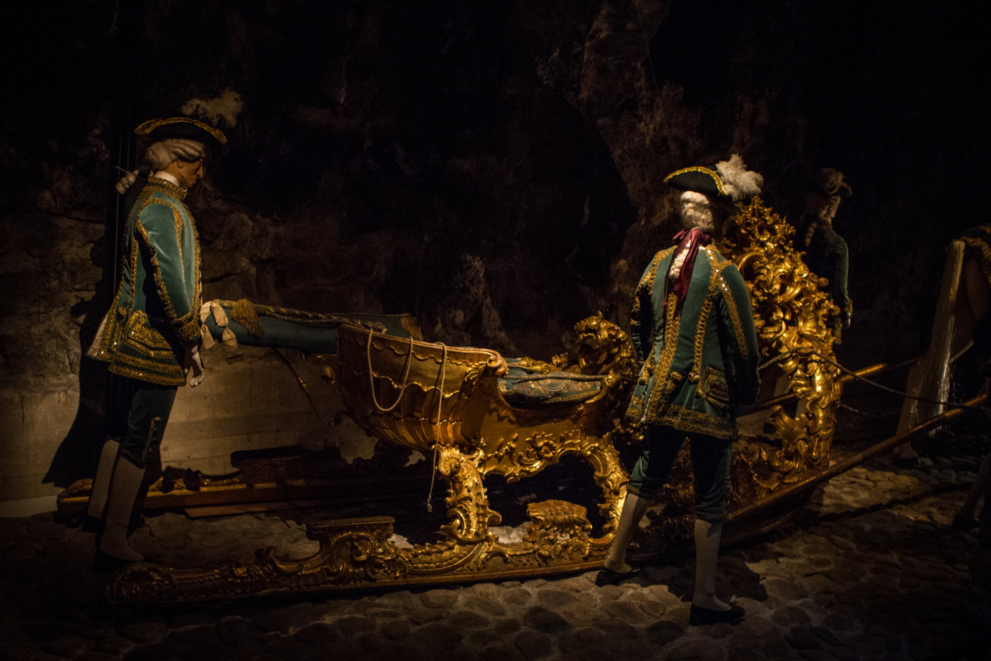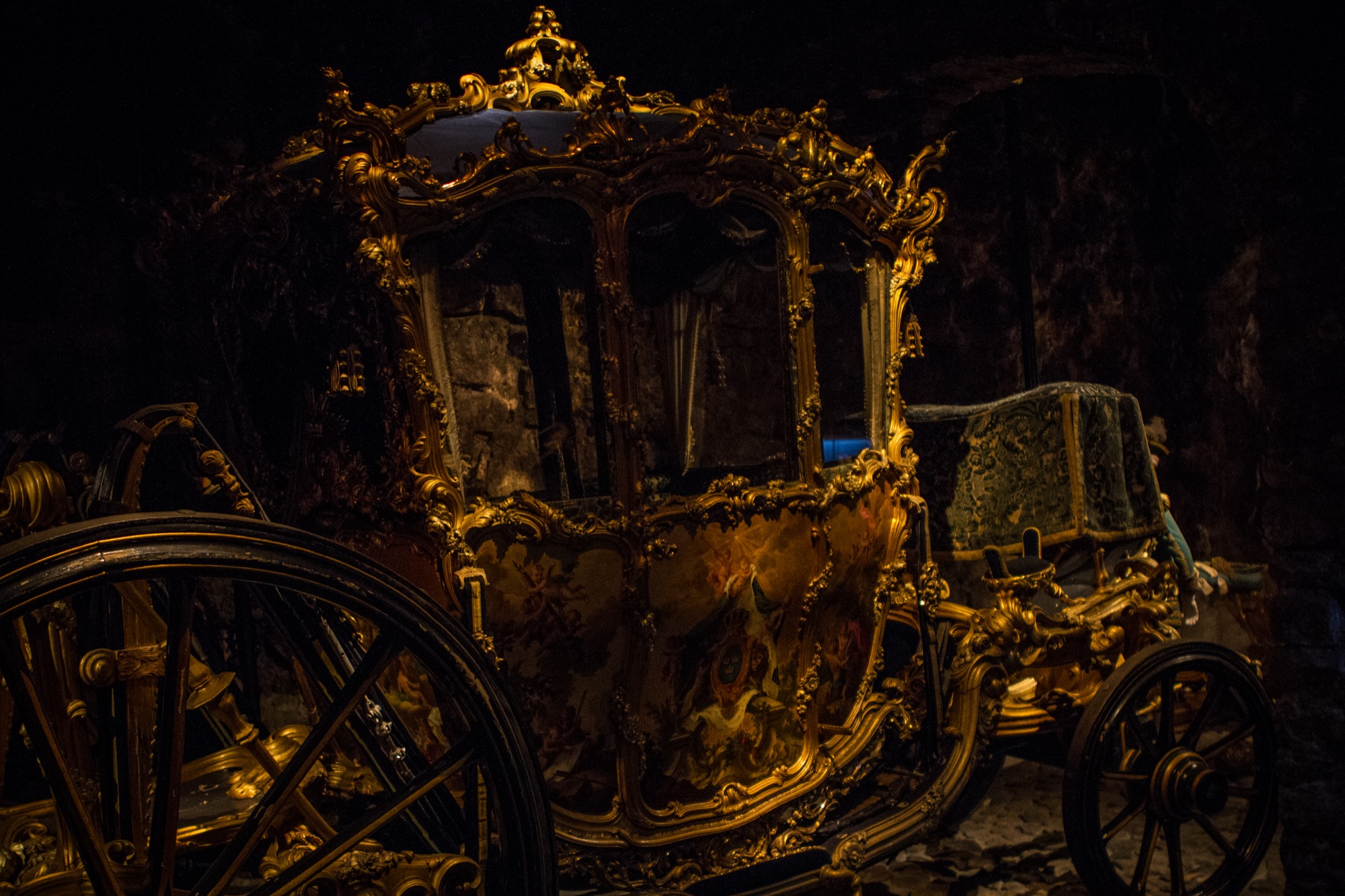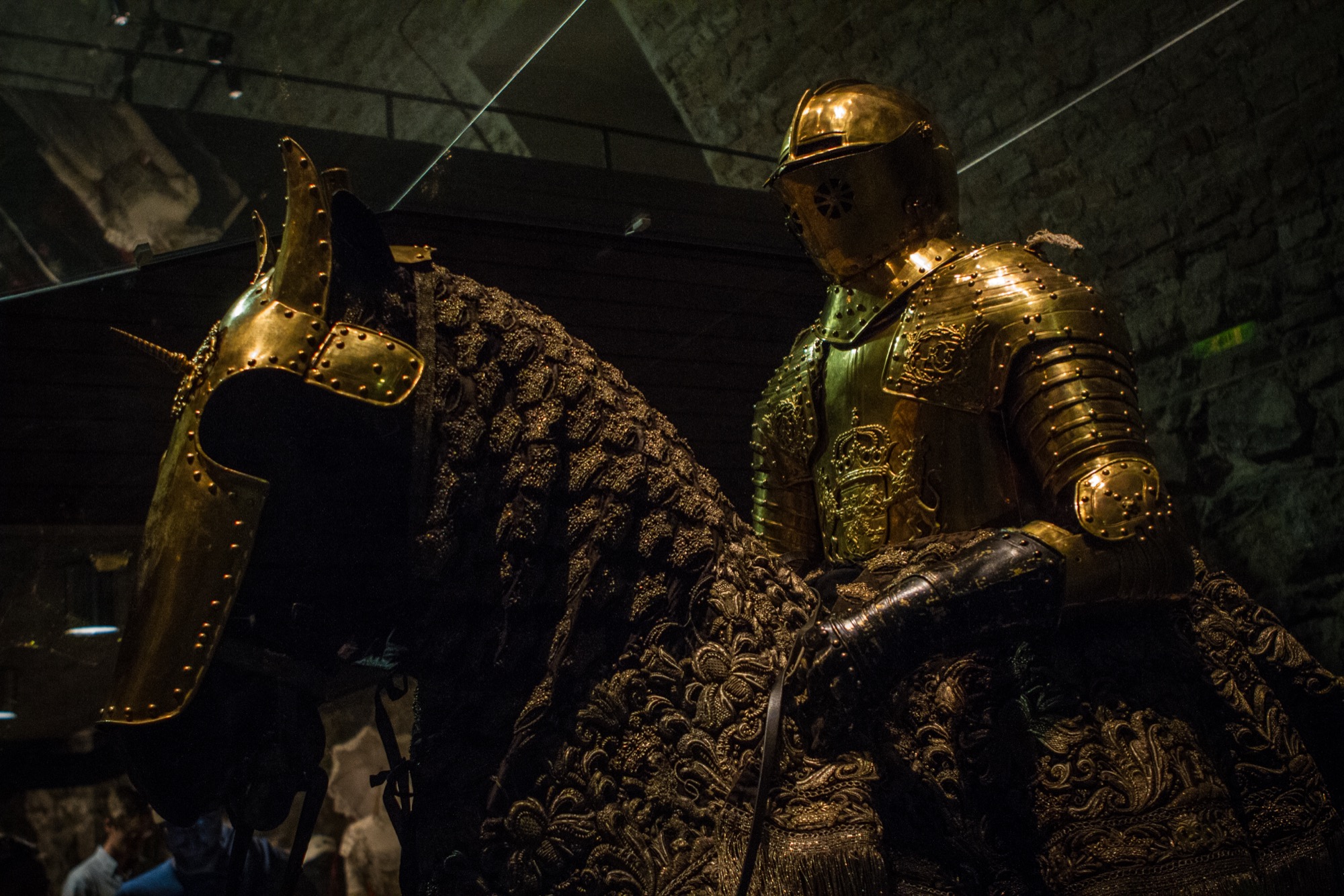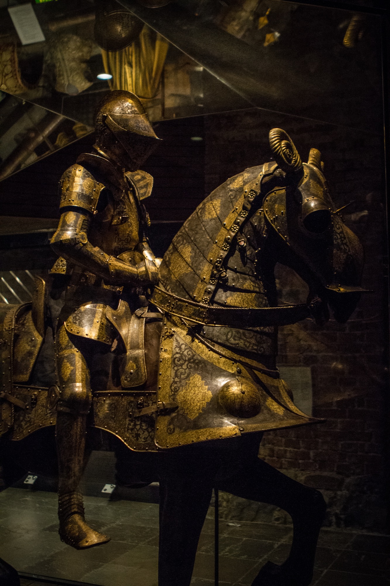 Dernière étape pour cette journée : l’armurerie royale, Livrustkammaren. Située au sous-sol du palais, elle est étonnamment gratuite et vous auriez terriblement tort de ne pas aller la visiter ! Deux raisons à cela : l’incroyable collection de carrosses d’une part ; l’incroyable (encore) succession de salles splendides peuplées d’armures, de costumes royaux, d’armes et autres accessoires, le tout couvrant au bas mot deux ou trois siècles d’histoire de la Suède, costumes de rois assassinés inclus ! Vraiment à voir !