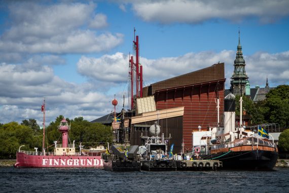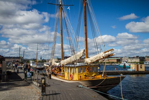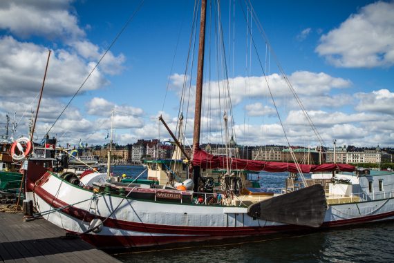 Retour par la rive est, au milieu d’une nuée de navires à quai, au pied du Moderne Museet que je ne visiterai pas, faute d’un mélange de manque de temps et d’envie ! L’art contemporain et moi sommes assez étrangers l’un à l’autre, voire totalement quand le soleil brille dehors. Il fait trop bon flâner sur les quais de ces deux petites îles, une sorte de pause au milieu de la jonction entre les eaux de la Baltique et du Mälaren.