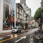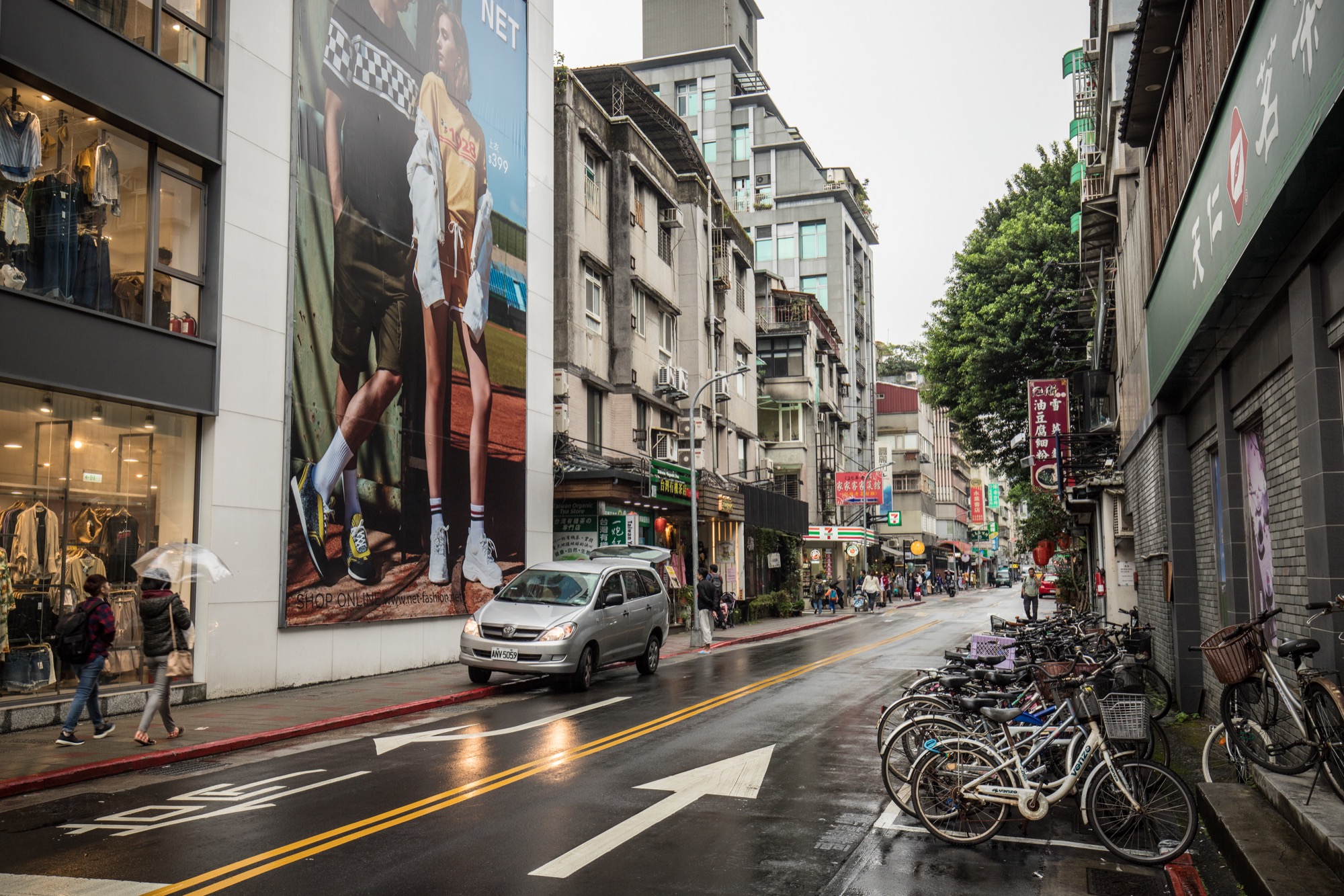 Je continue ma looooongue marche à pieds à travers le quartier de Da’an pour rejoindre ZhongZheng. Les rues sont charmantes, peuplées de nombreux cafés et boutiques plutôt chic et adorables. Derrière la grisaille des murs, avec des intérieurs lumineux, il y a une certaine qualité de vie ou une nonchalance qui n’est pas sans rappeler certains centre ville européens. Agréable, avec le parapluie au dessus de la tête tandis que les gouttes s’obstinent à tomber.